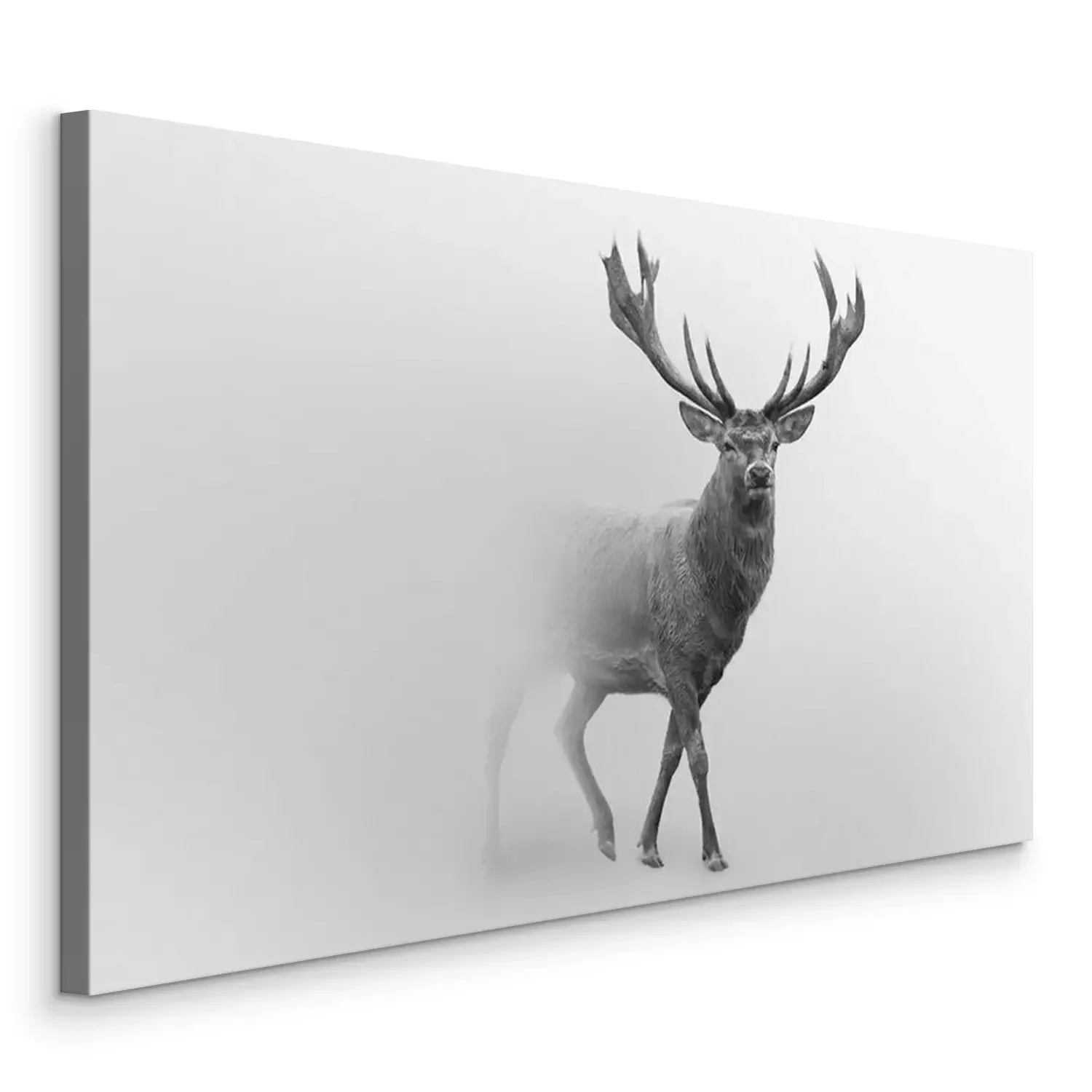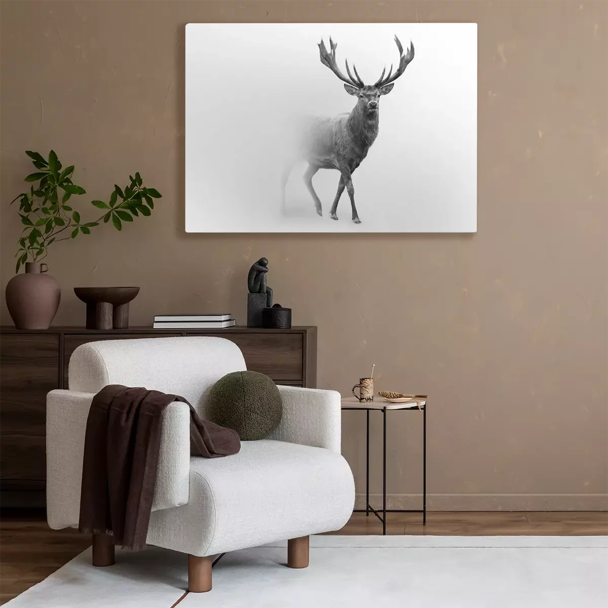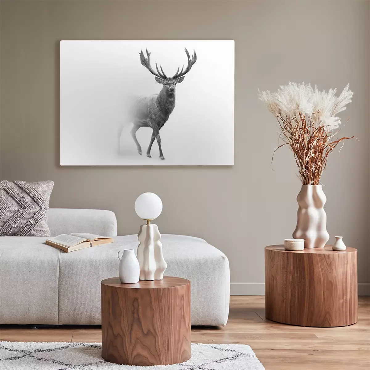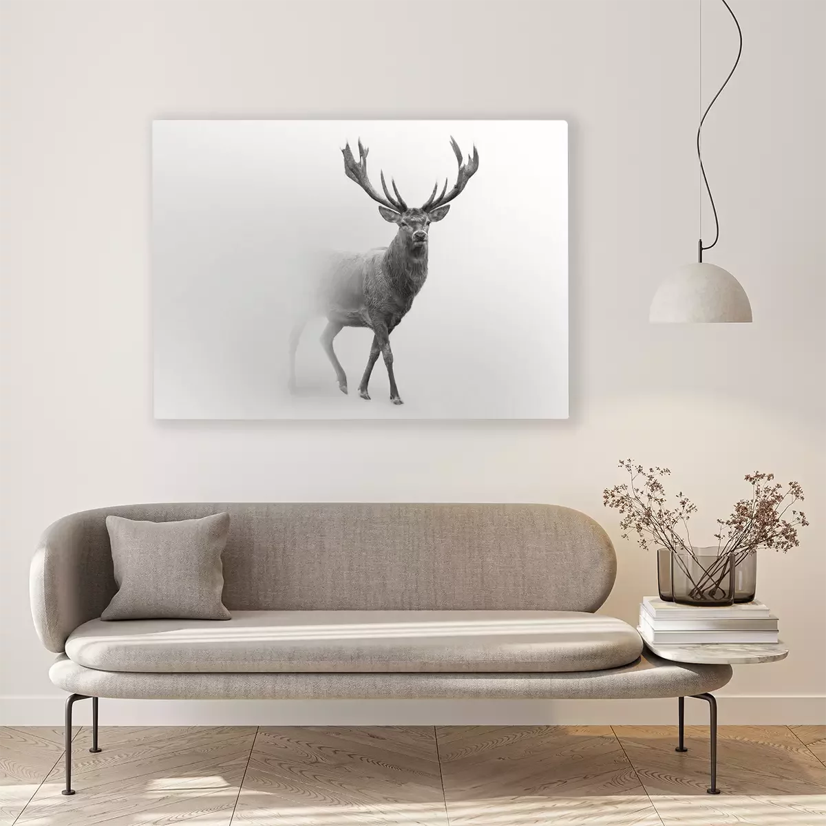 Canvas: Minimalistische fotografie van een hert in grijstinten
