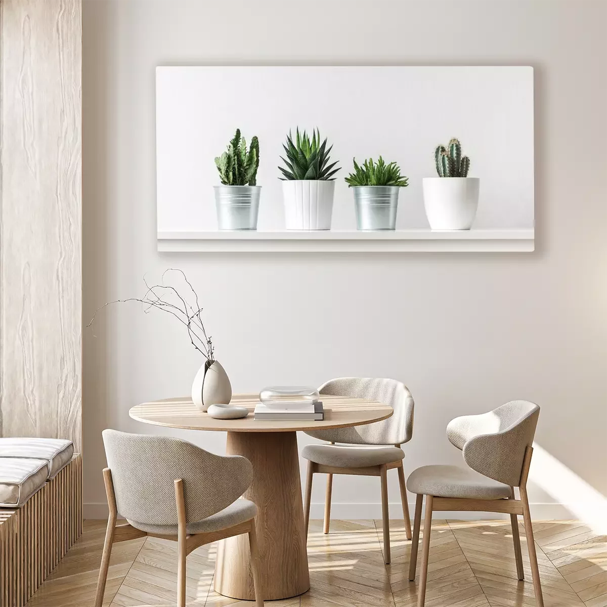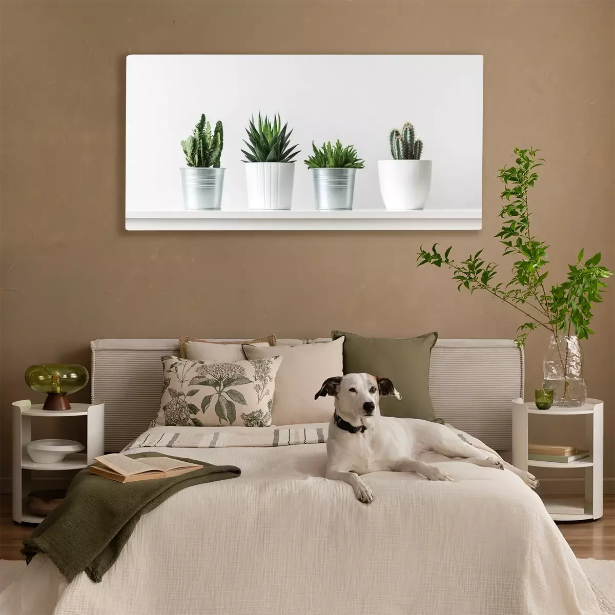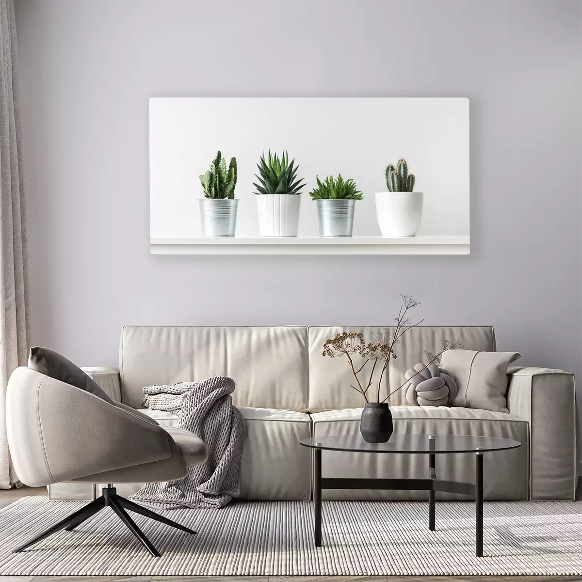 De print wordt aangebracht op hoogwaardig canvas dat op een schildersweefgetouw (spieraam) wordt gespannen. Omdat de print de zijranden bedekt, hoeft het ontwerp niet met een extra kader te worden omlijst. Wij raden ook composities aan die uit meerdere foto's bestaan en zo een coherente compositie vormen.