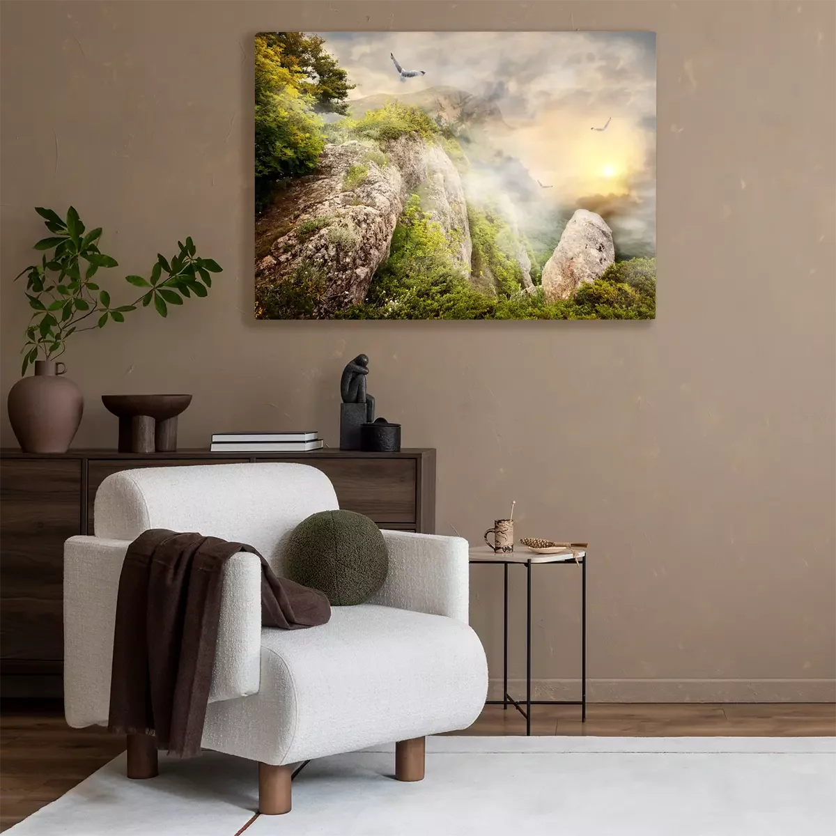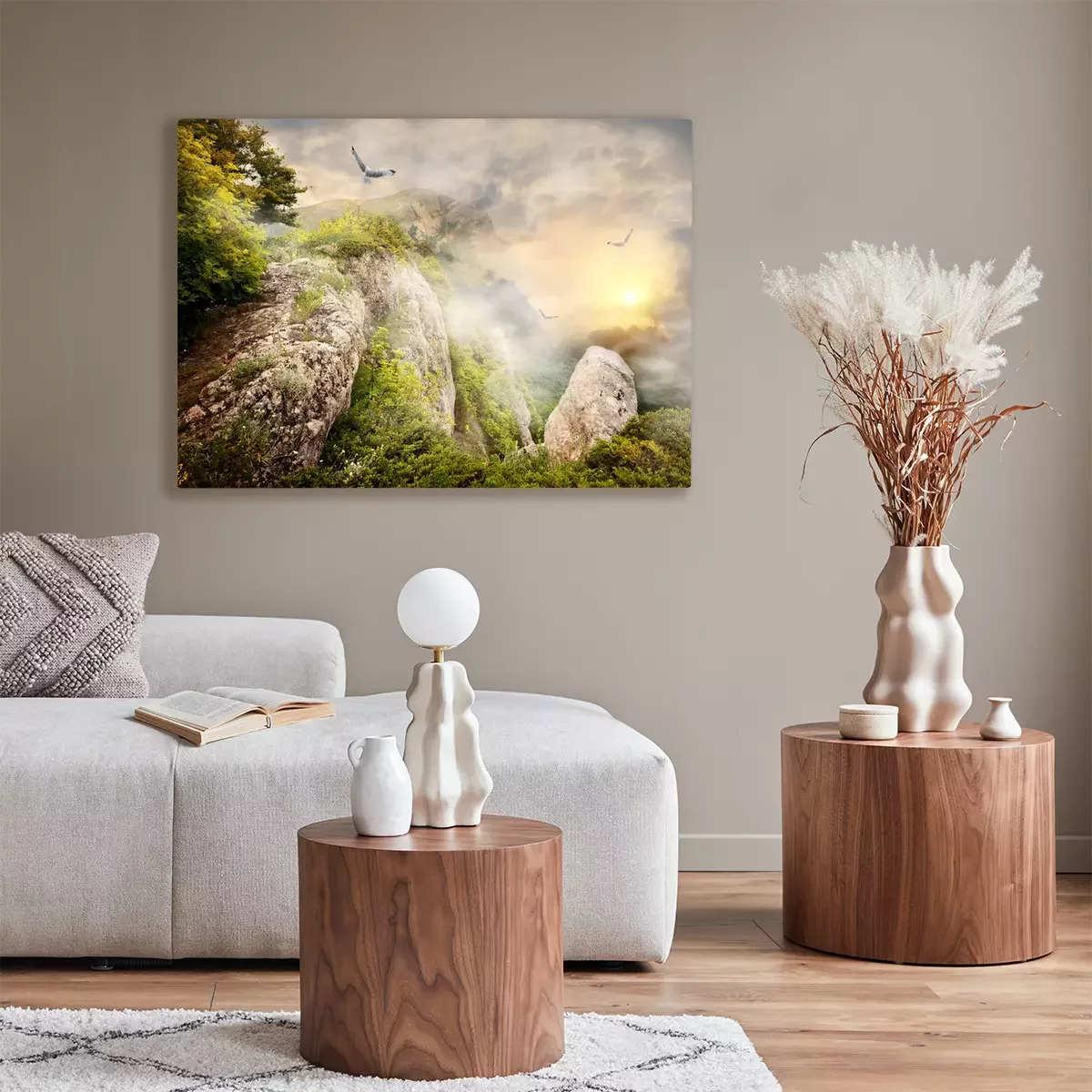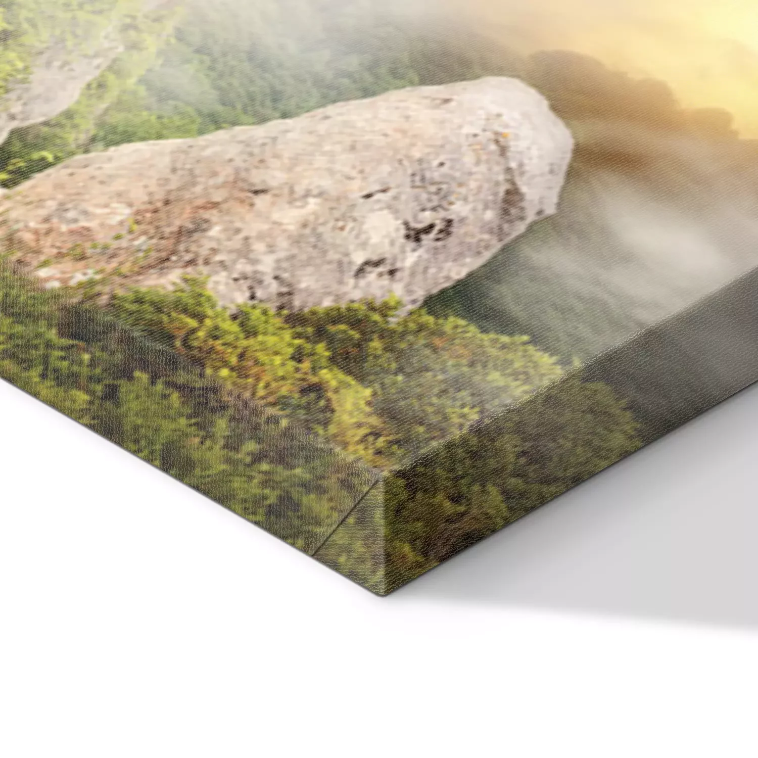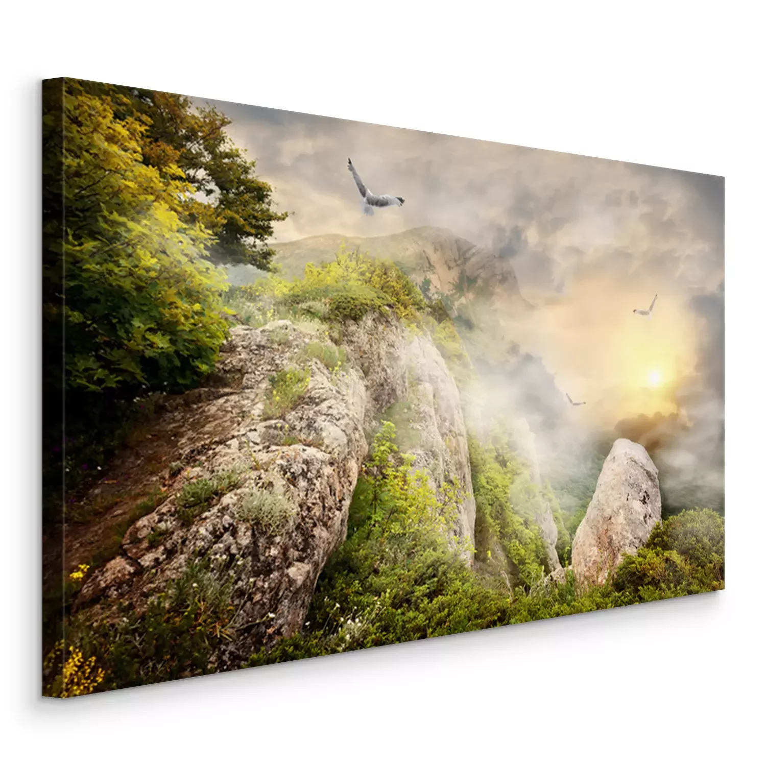 De print wordt aangebracht op hoogwaardig canvas dat op een schildersweefgetouw (spieraam) wordt gespannen. Omdat de print de zijranden bedekt, hoeft het ontwerp niet met een extra kader te worden omlijst. Wij raden ook composities aan die uit meerdere foto's bestaan en zo een coherente compositie vormen.