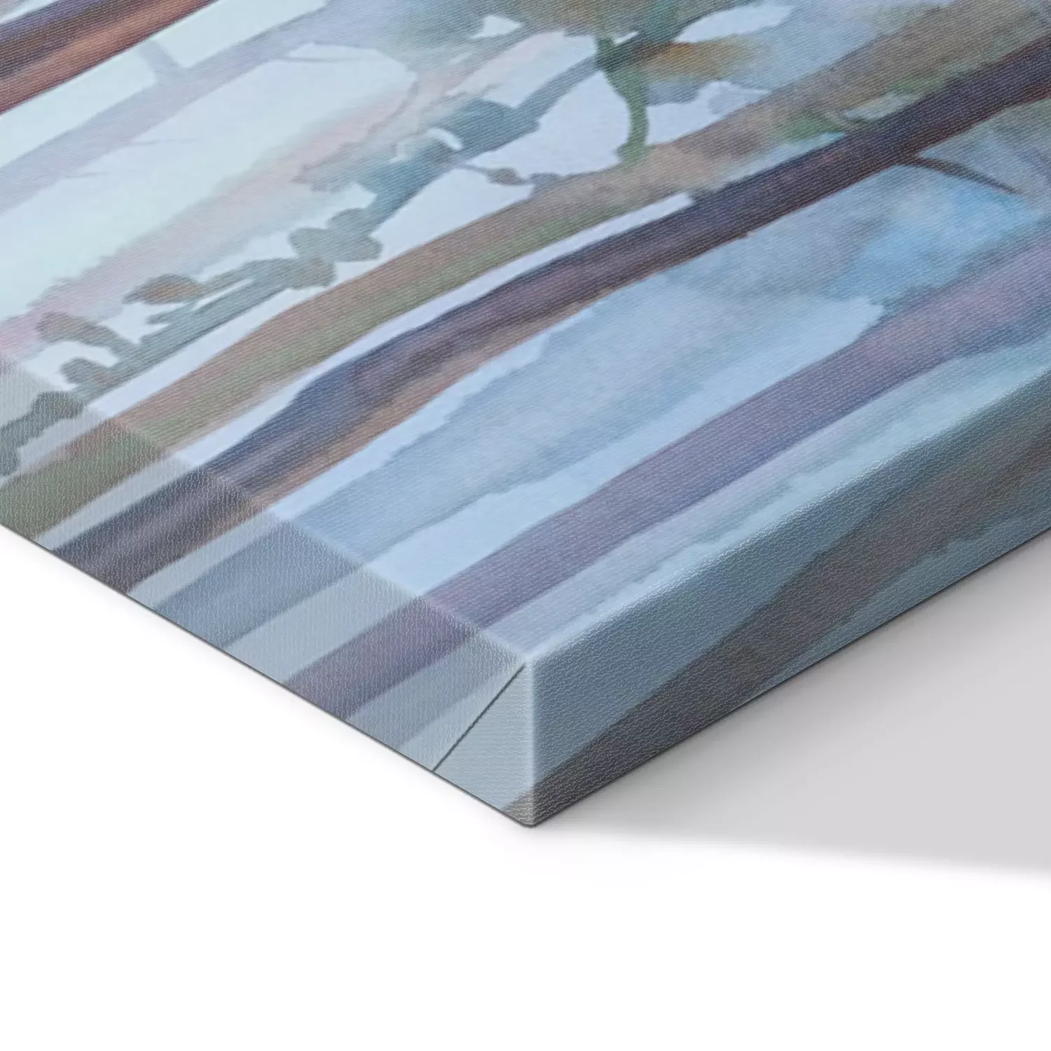 De print wordt aangebracht op hoogwaardig canvas dat op een schildersweefgetouw (spieraam) wordt gespannen. Omdat de print de zijranden bedekt, hoeft het ontwerp niet met een extra kader te worden omlijst. Wij raden ook composities aan die uit meerdere foto's bestaan en zo een coherente compositie vormen.
