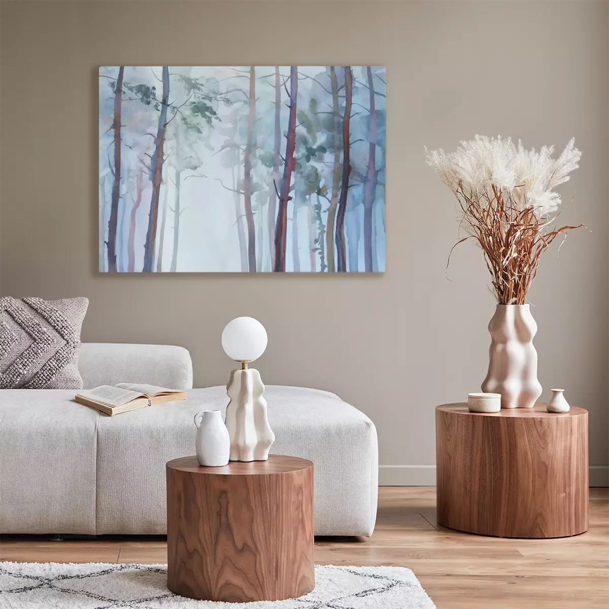 Canvas: Mistig bos aquarel