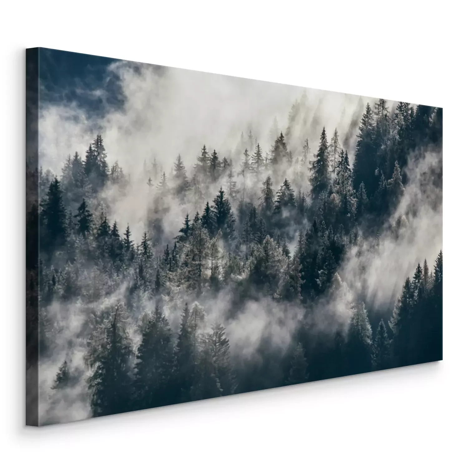 Canvas Mistig bos op de helling