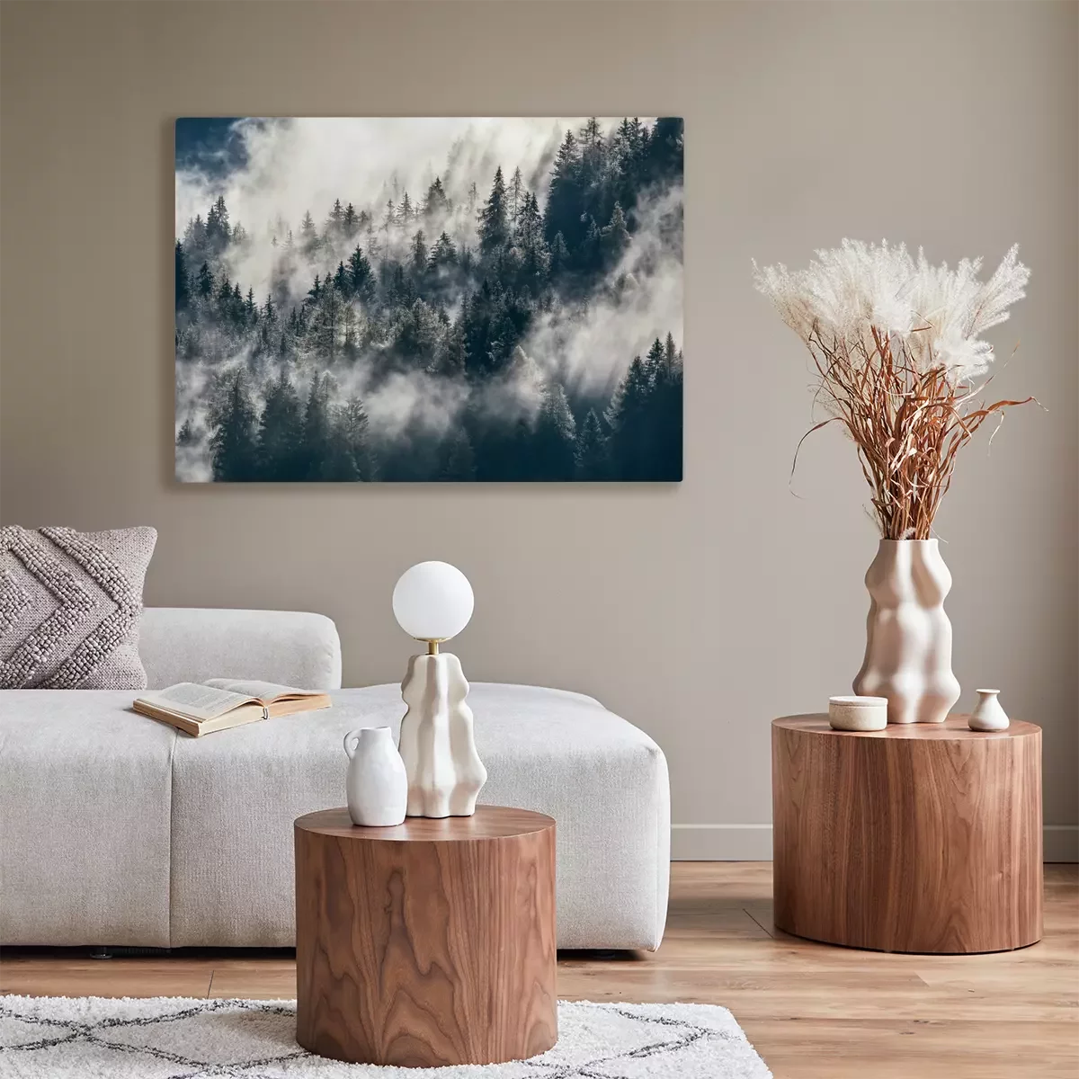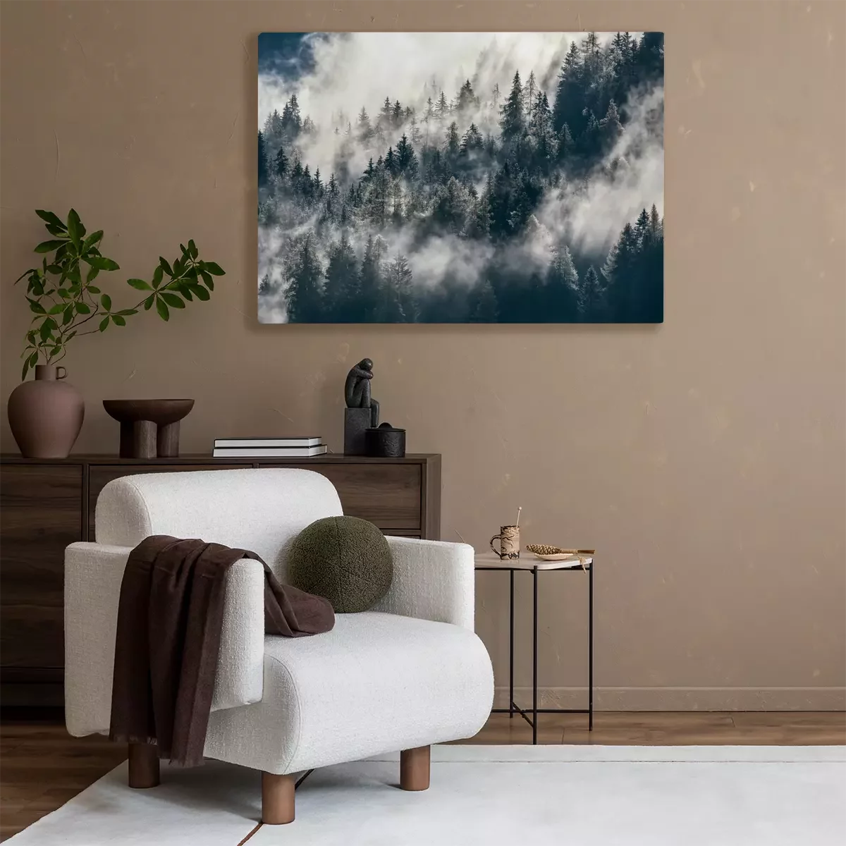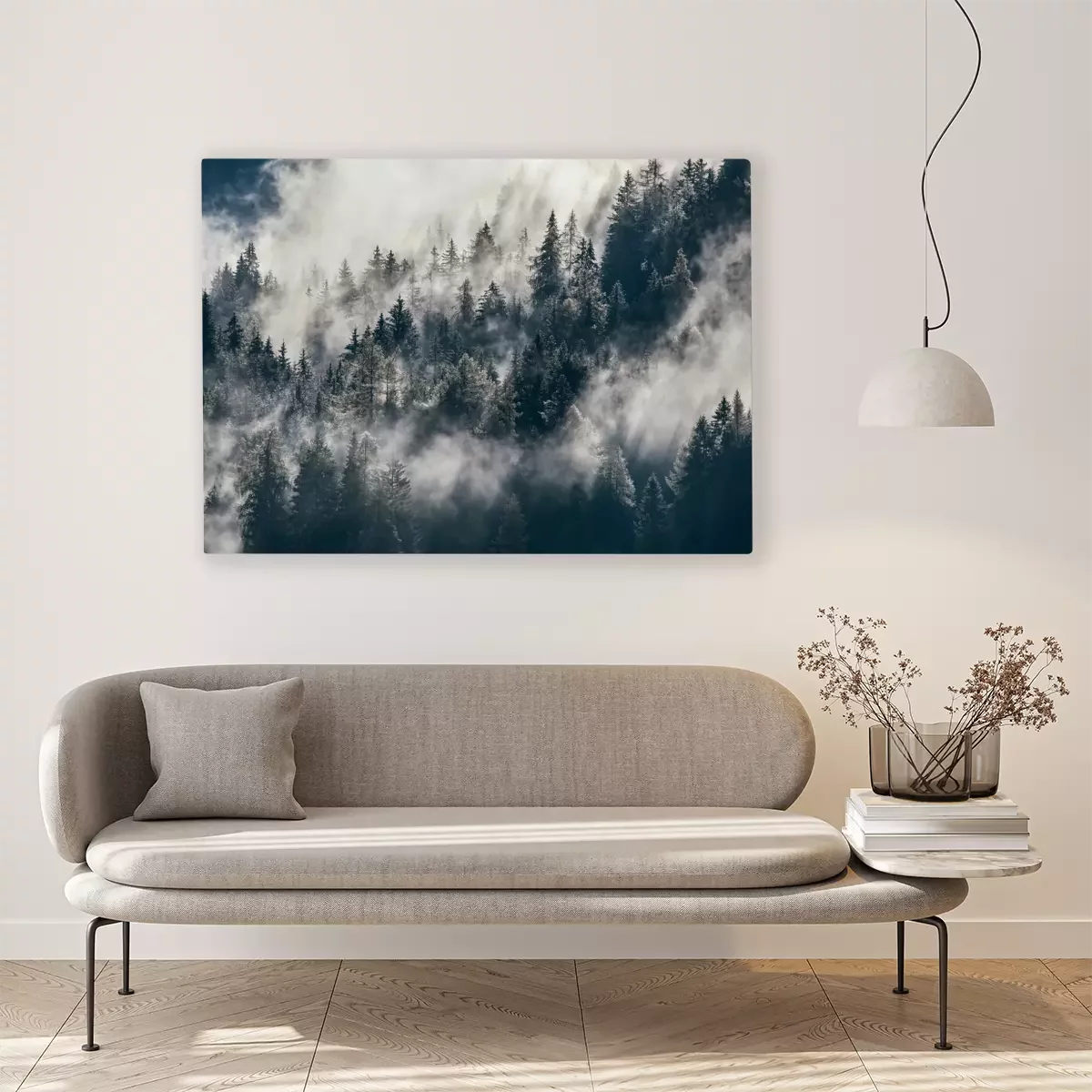Canvas: Mistig bos op de helling