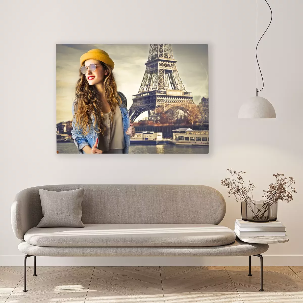 De print wordt aangebracht op hoogwaardig canvas dat op een schildersweefgetouw (spieraam) wordt gespannen. Omdat de print de zijranden bedekt, hoeft het ontwerp niet met een extra kader te worden omlijst. Wij raden ook composities aan die uit meerdere foto's bestaan en zo een coherente compositie vormen.