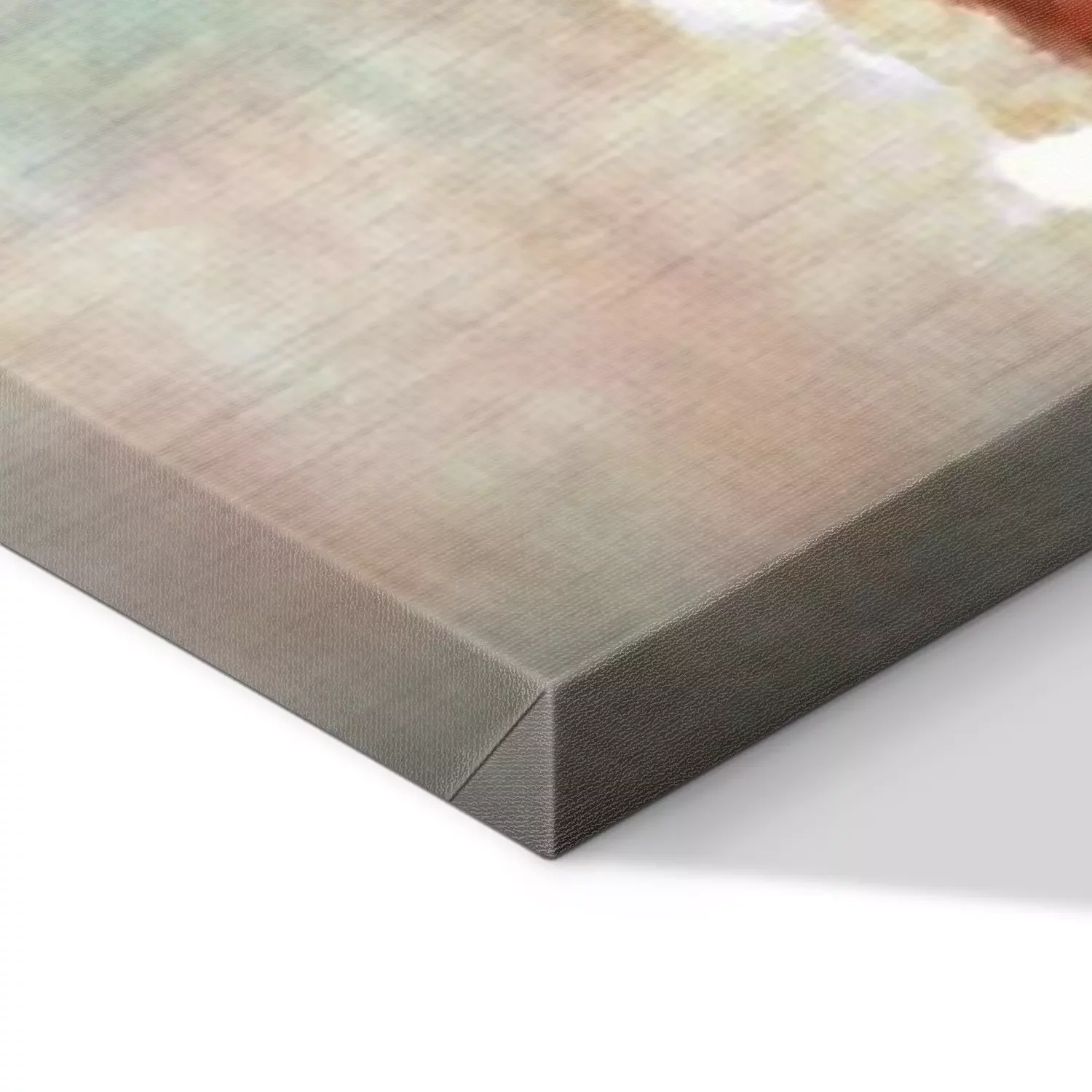 De print wordt aangebracht op hoogwaardig canvas dat op een schildersweefgetouw (spieraam) wordt gespannen. Omdat de print de zijranden bedekt, hoeft het ontwerp niet met een extra kader te worden omlijst. Wij raden ook composities aan die uit meerdere foto's bestaan en zo een coherente compositie vormen.