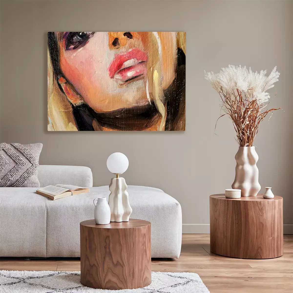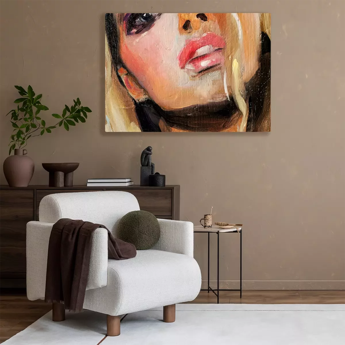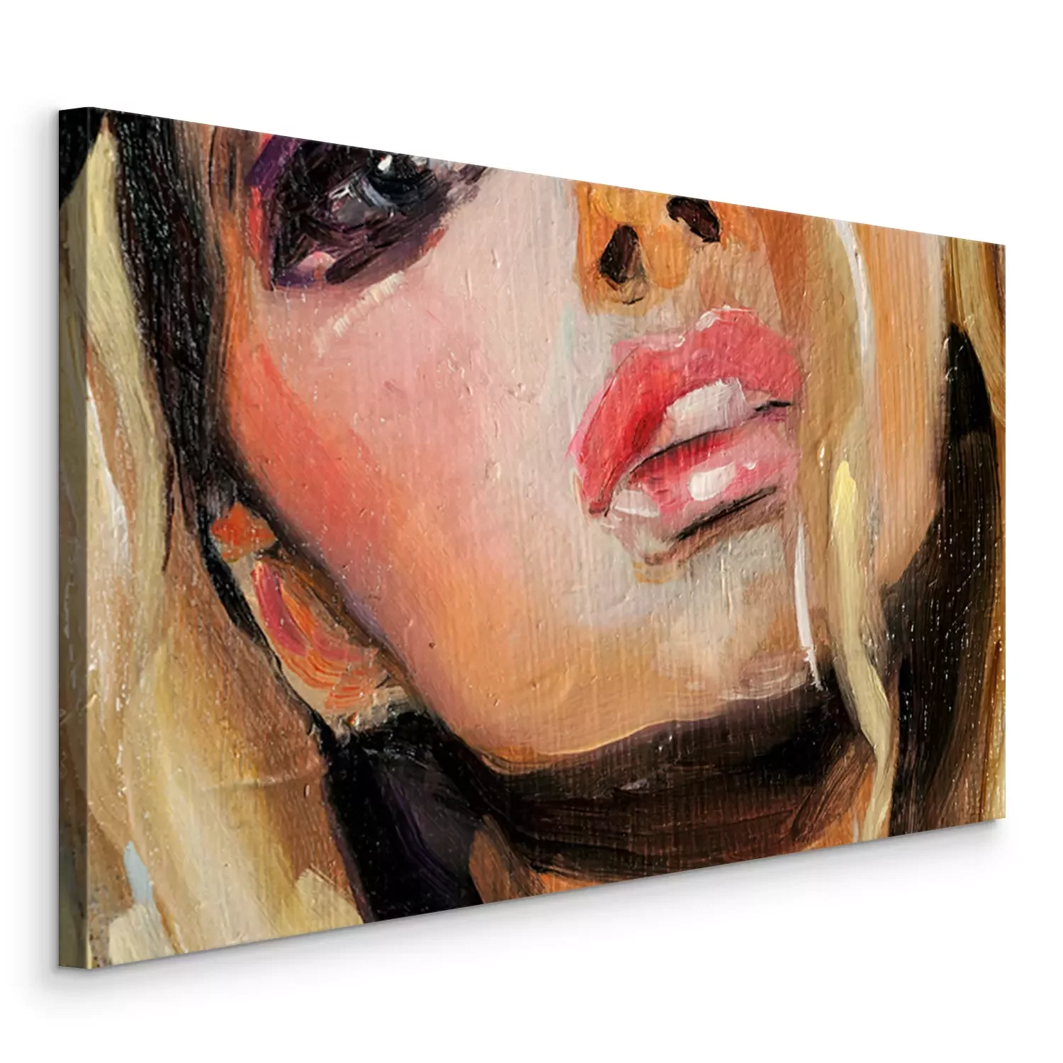 Canvas Modern art, beautiful caucasian woman with blue eyes and blonde hair, oil painting