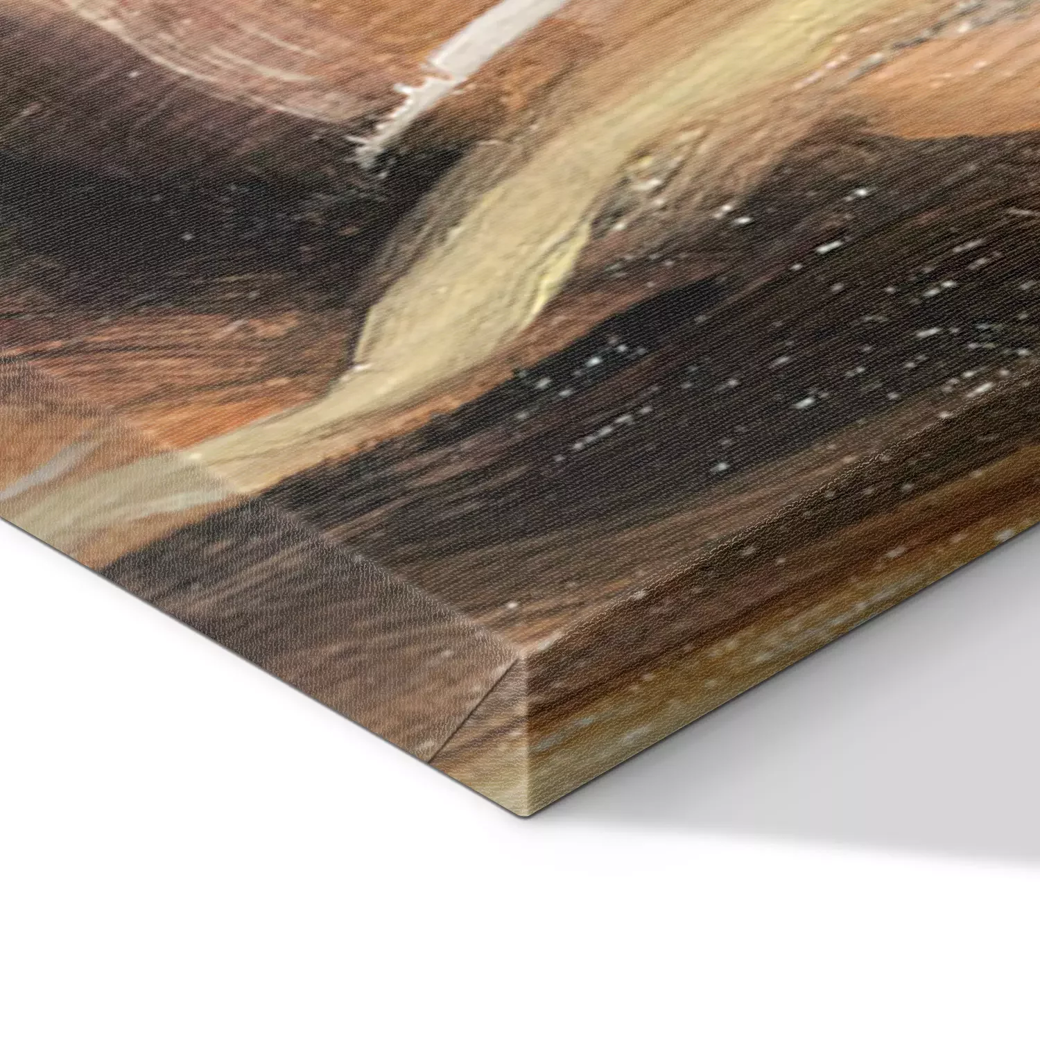 De print wordt aangebracht op hoogwaardig canvas dat op een schildersweefgetouw (spieraam) wordt gespannen. Omdat de print de zijranden bedekt, hoeft het ontwerp niet met een extra kader te worden omlijst. Wij raden ook composities aan die uit meerdere foto's bestaan en zo een coherente compositie vormen.