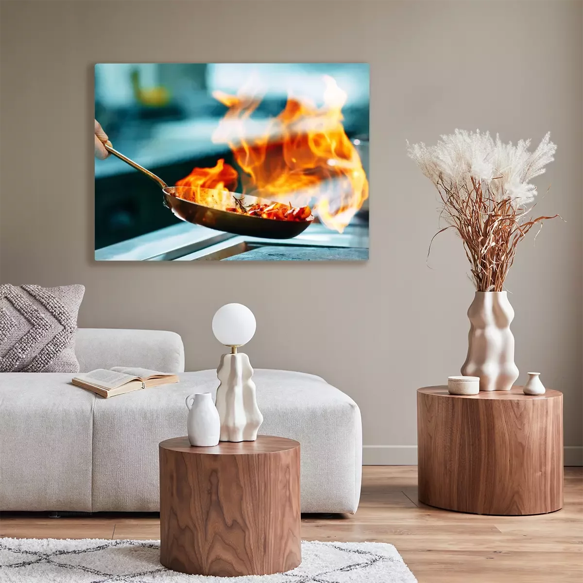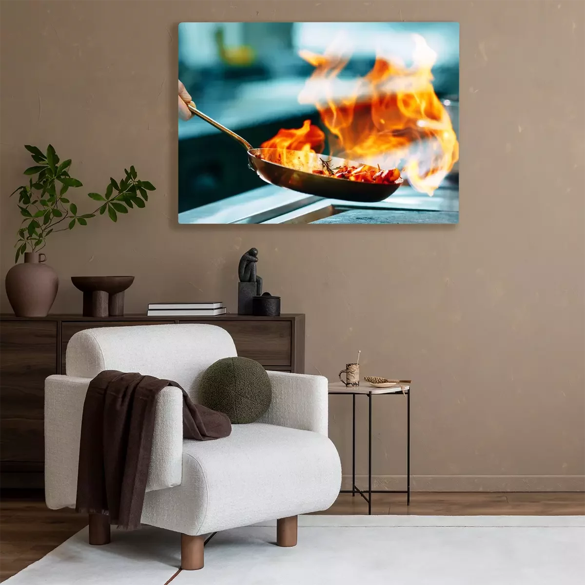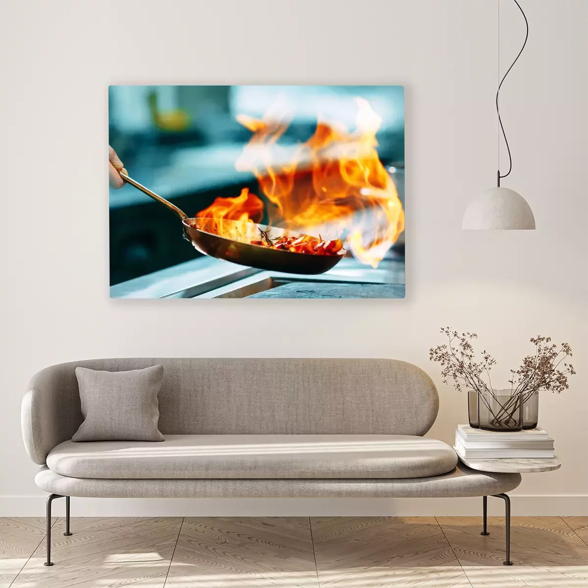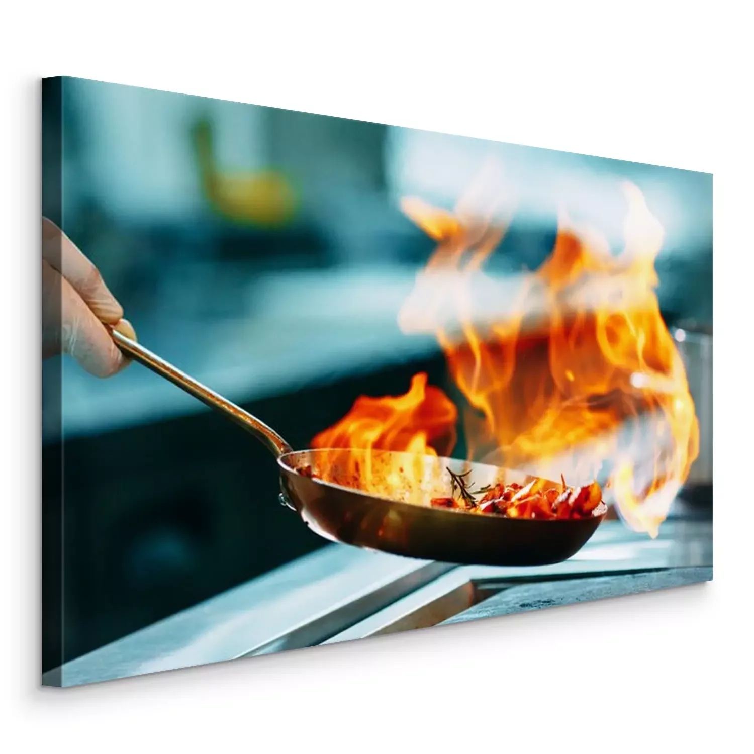 Canvas Modern kitchen. Cooks prepare meals on the stove in the kitchen of the restaurant or hotel. The fire in the kitchen.