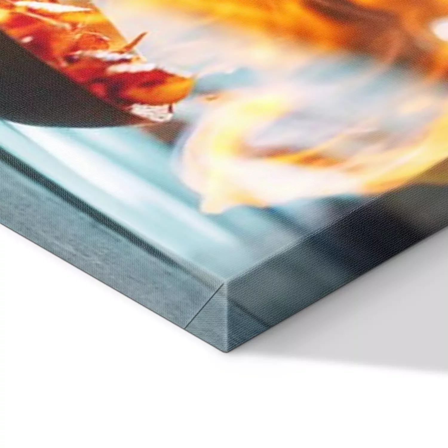 De print wordt aangebracht op hoogwaardig canvas dat op een schildersweefgetouw (spieraam) wordt gespannen. Omdat de print de zijranden bedekt, hoeft het ontwerp niet met een extra kader te worden omlijst. Wij raden ook composities aan die uit meerdere foto's bestaan en zo een coherente compositie vormen.