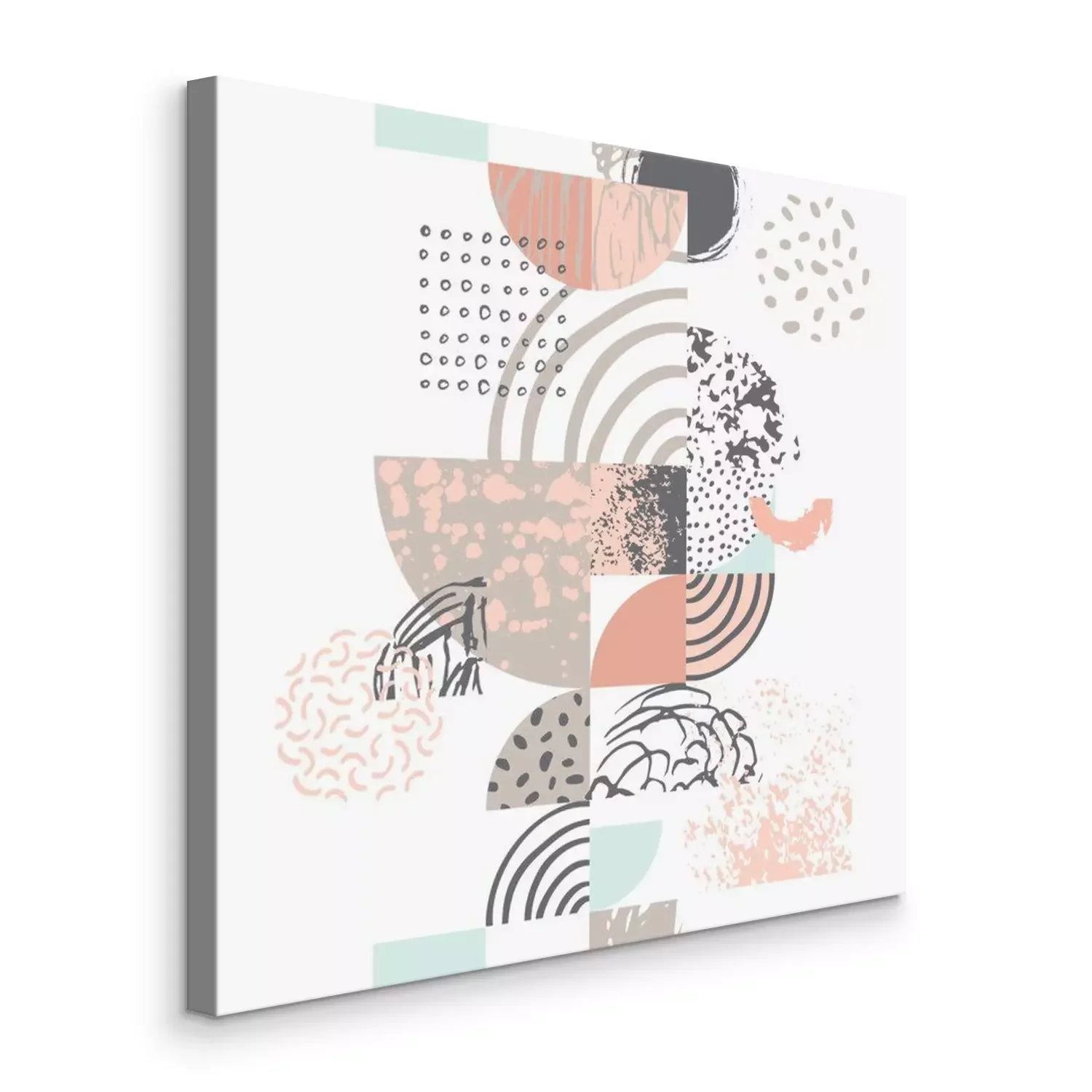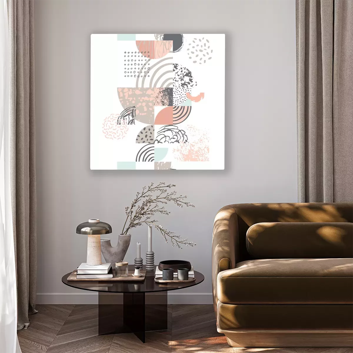 Canvas: Modern naadloos geometrisch patroon: halve cirkels, cirkels, vierkanten, grunge texturen, doodles