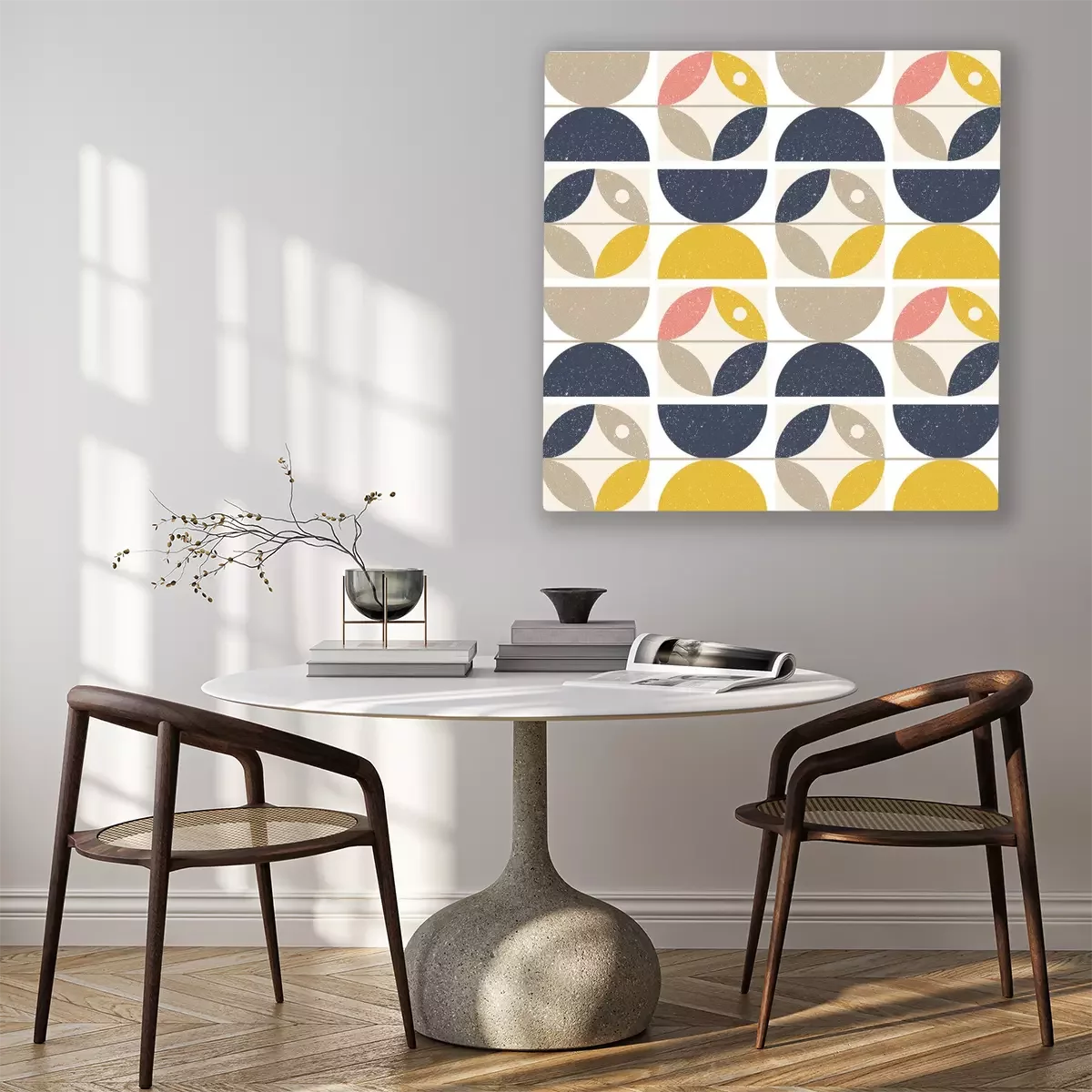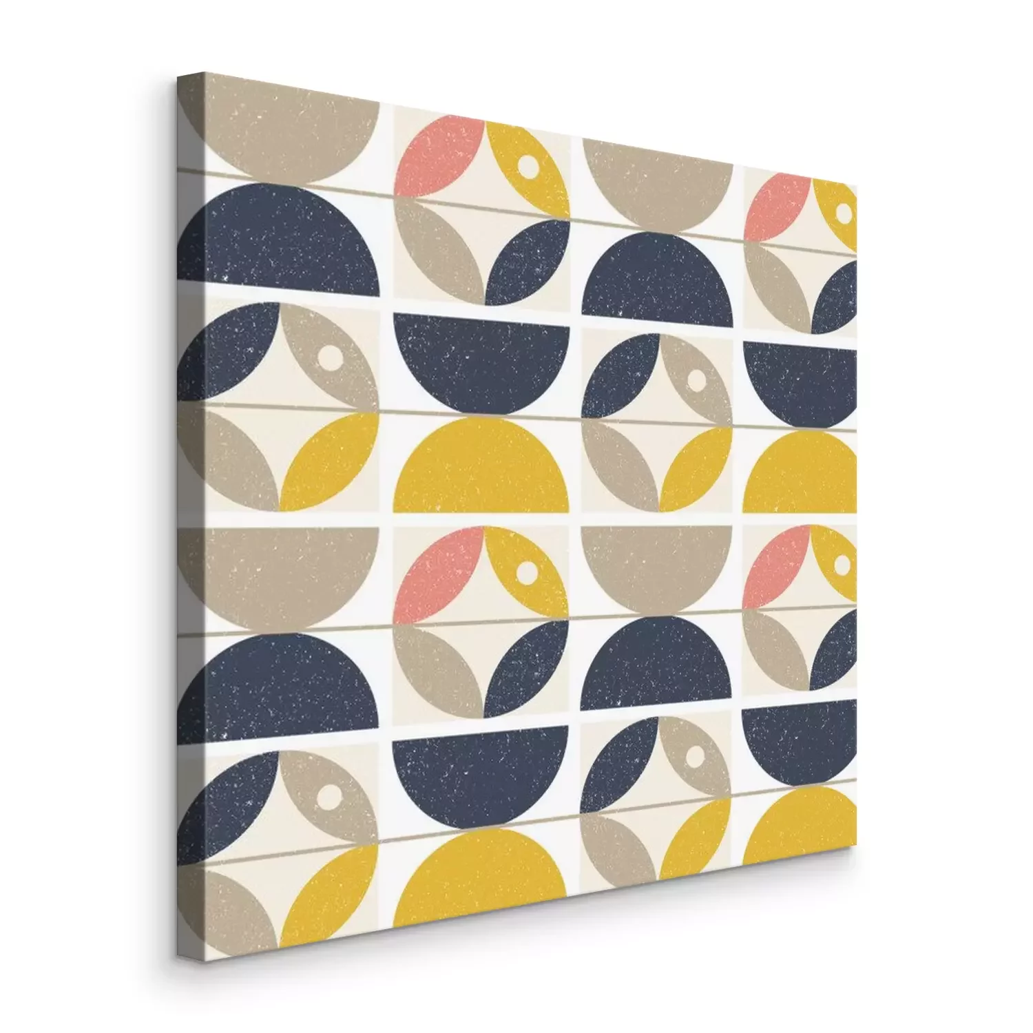 Canvas: Modern vector abstracte naadloze geometrische patroon met halve cirkels en cirkels in retro-Scandinavische stijl