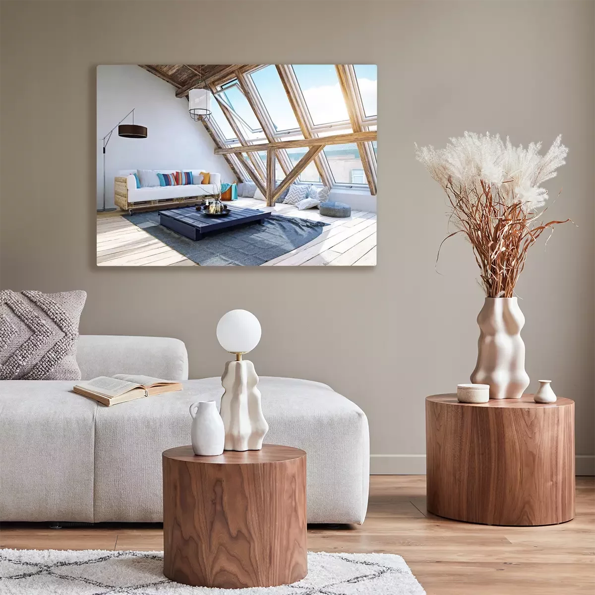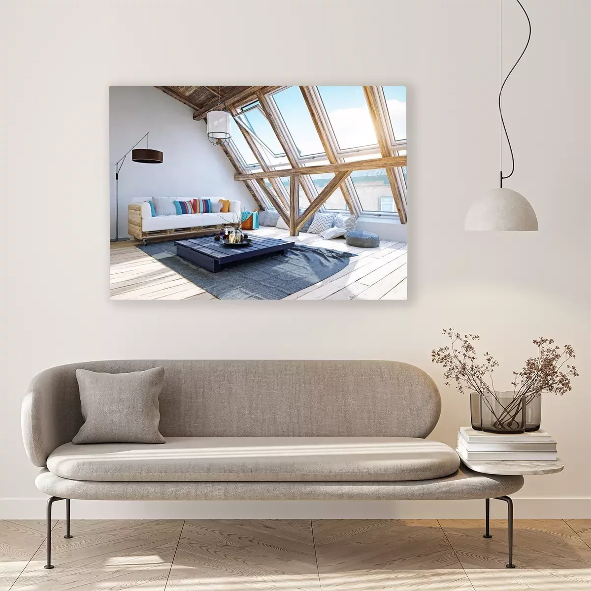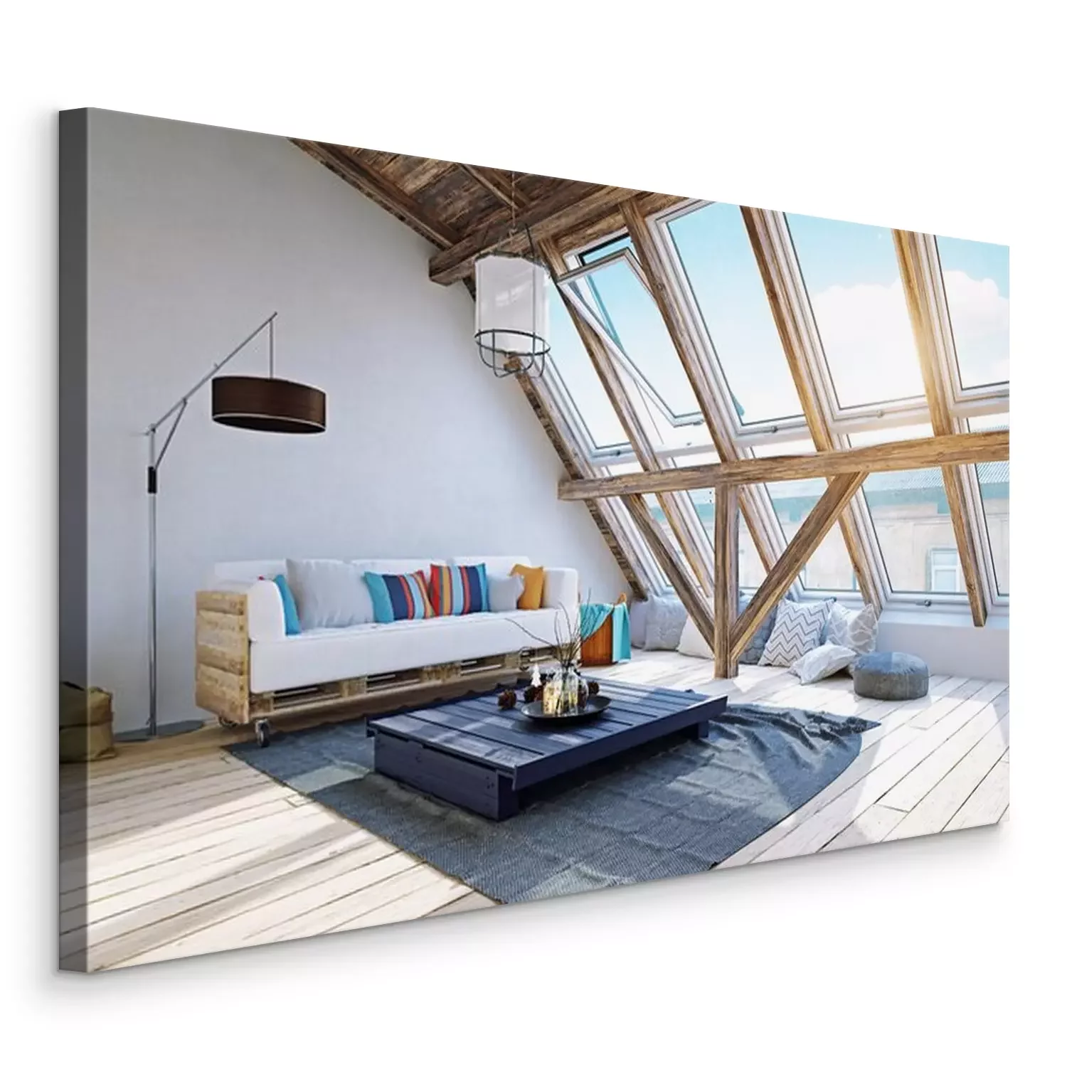 Canvas: modern zolder interieur. 3D-rendering concept