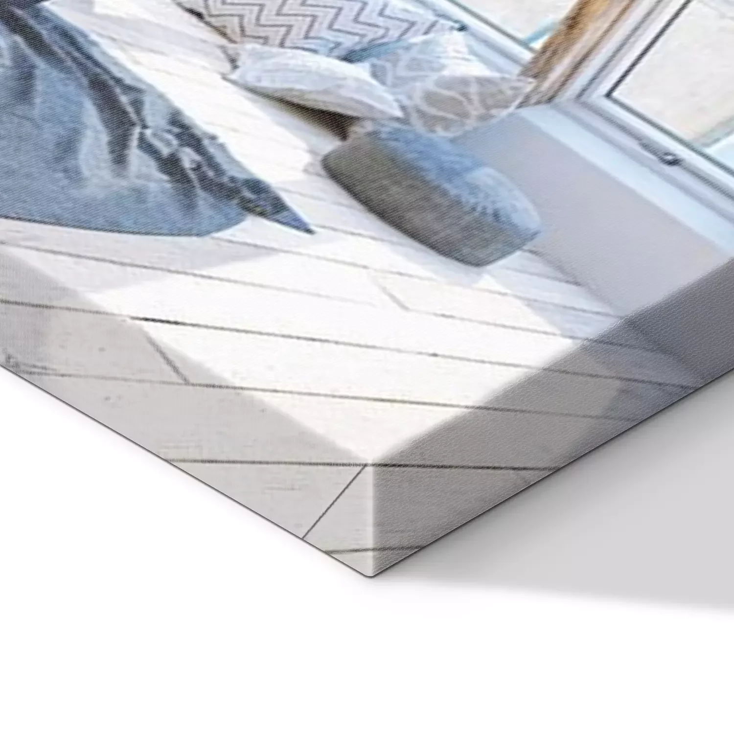 De print wordt aangebracht op hoogwaardig canvas dat op een schildersweefgetouw (spieraam) wordt gespannen. Omdat de print de zijranden bedekt, hoeft het ontwerp niet met een extra kader te worden omlijst. Wij raden ook composities aan die uit meerdere foto's bestaan en zo een coherente compositie vormen.