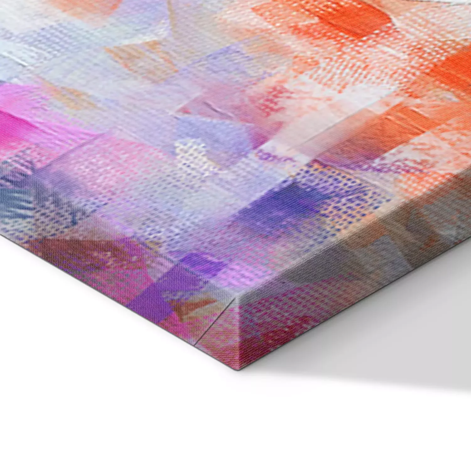 De print wordt aangebracht op hoogwaardig canvas dat op een schildersweefgetouw (spieraam) wordt gespannen. Omdat de print de zijranden bedekt, hoeft het ontwerp niet met een extra kader te worden omlijst. Wij raden ook composities aan die uit meerdere foto's bestaan en zo een coherente compositie vormen.