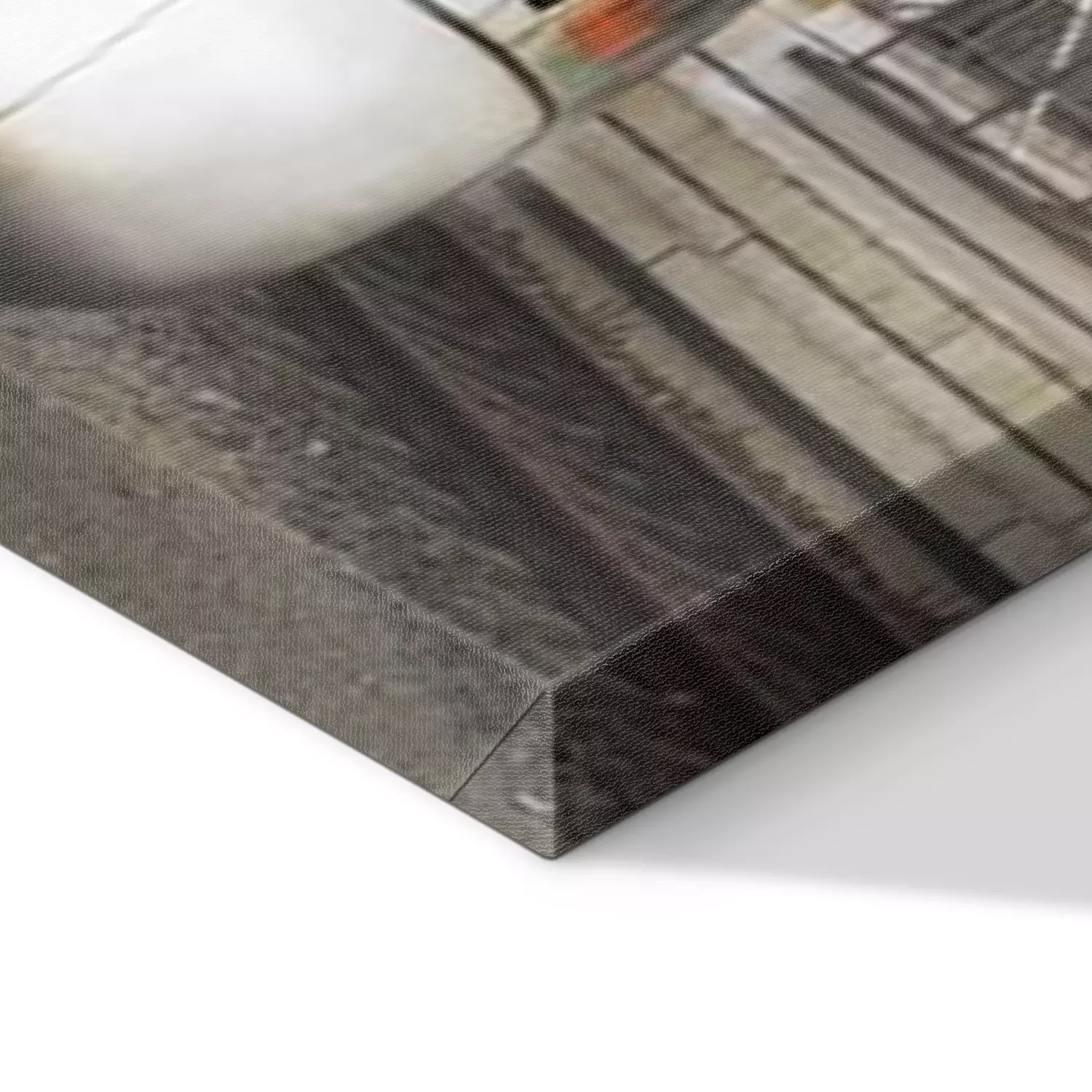 De print wordt aangebracht op hoogwaardig canvas dat op een schildersweefgetouw (spieraam) wordt gespannen. Omdat de print de zijranden bedekt, hoeft het ontwerp niet met een extra kader te worden omlijst. Wij raden ook composities aan die uit meerdere foto's bestaan en zo een coherente compositie vormen.