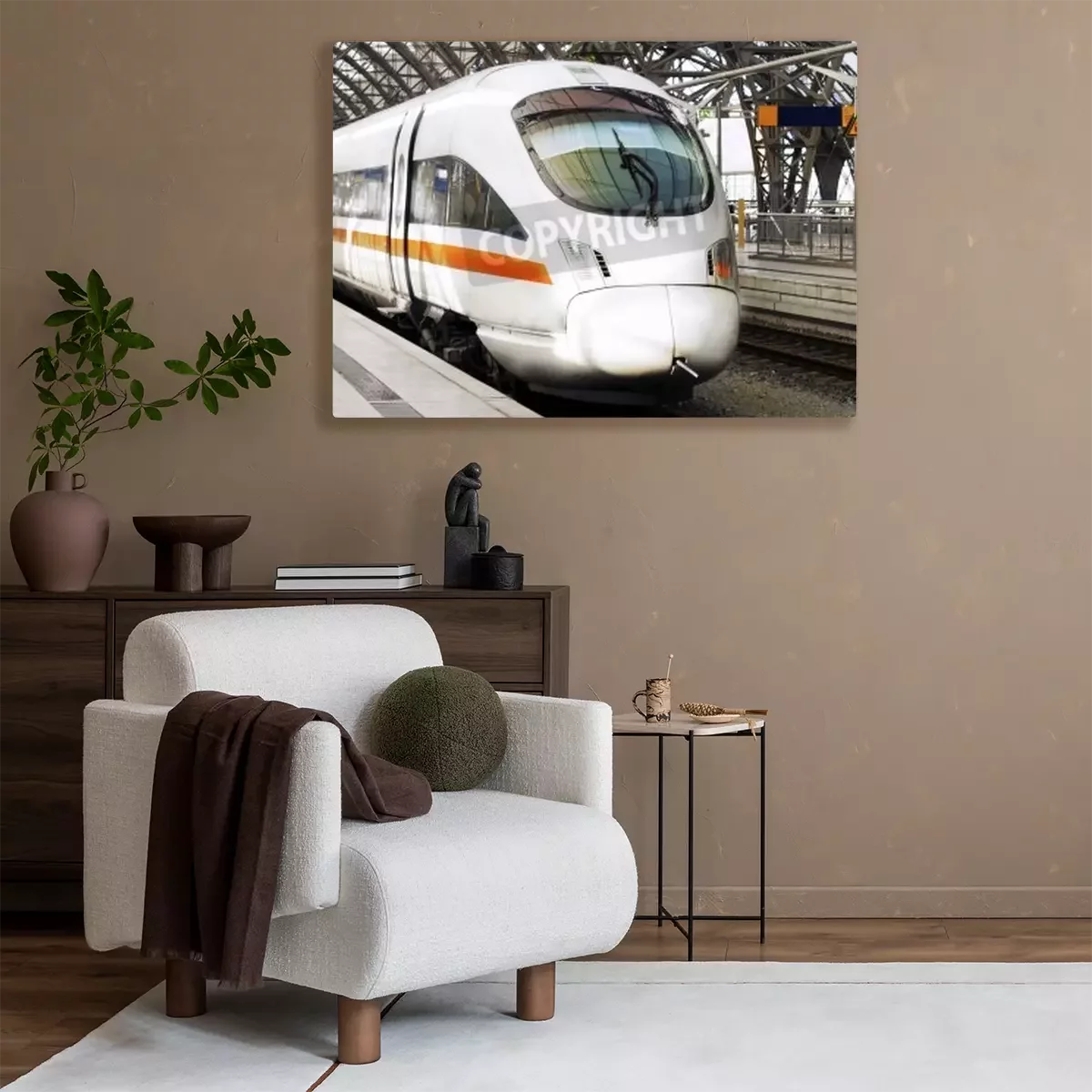 Canvas Moderne hogesnelheidstrein klaar om te vertrekt vanaf spoor station.Germany