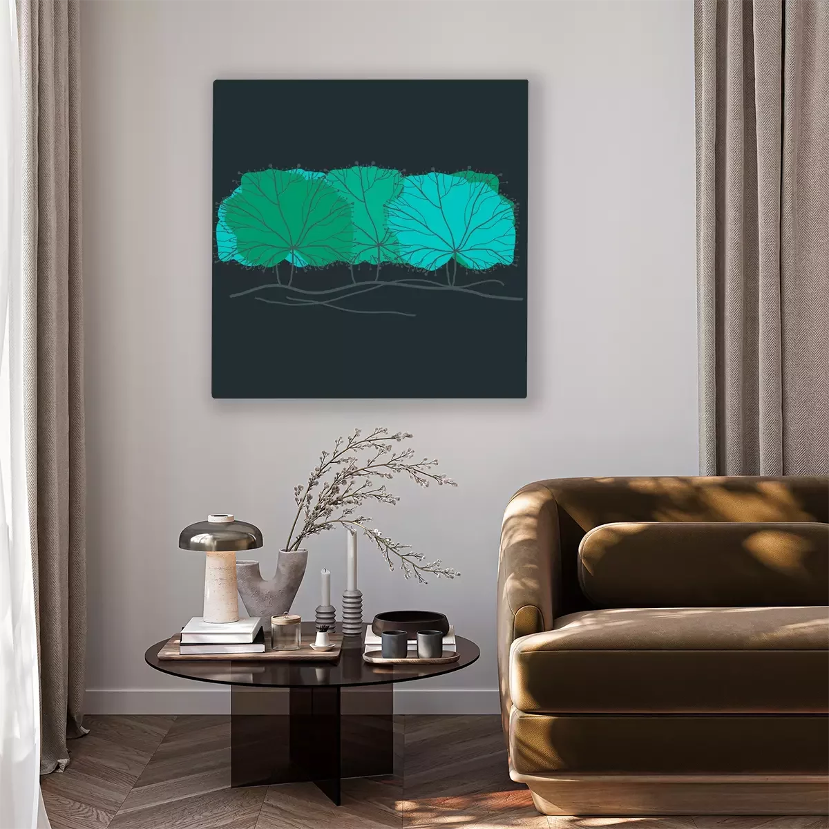 De print wordt aangebracht op hoogwaardig canvas dat op een schildersweefgetouw (spieraam) wordt gespannen. Omdat de print de zijranden bedekt, hoeft het ontwerp niet met een extra kader te worden omlijst. Wij raden ook composities aan die uit meerdere foto's bestaan en zo een coherente compositie vormen.