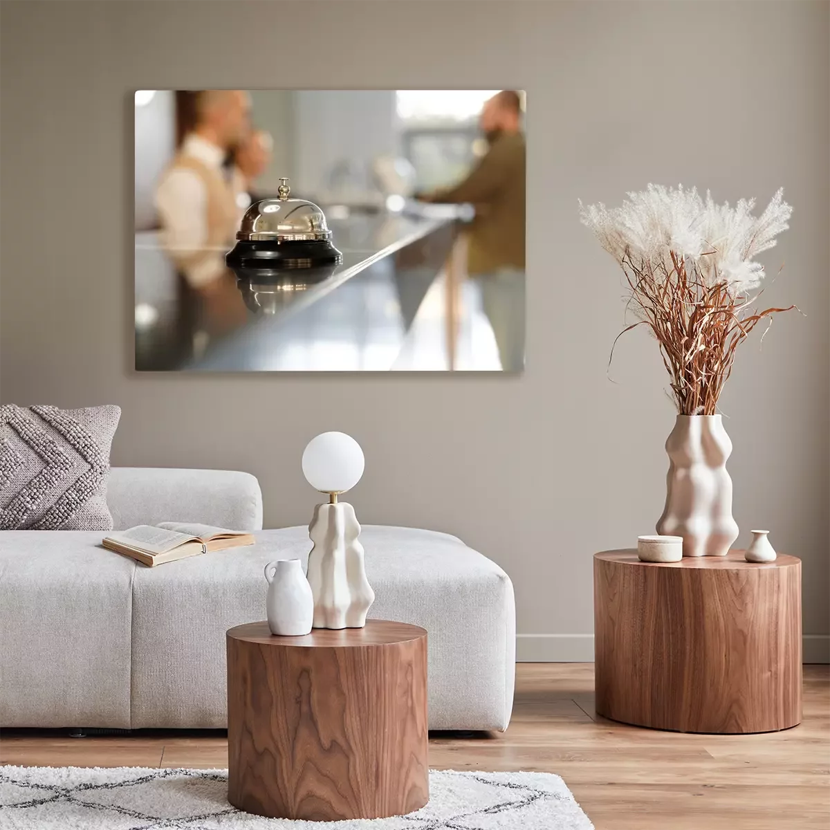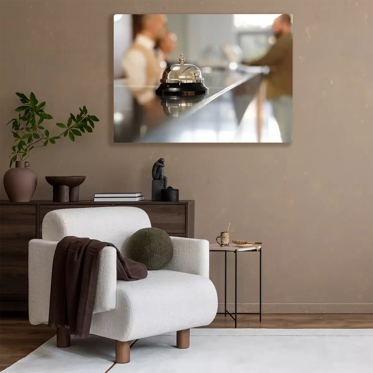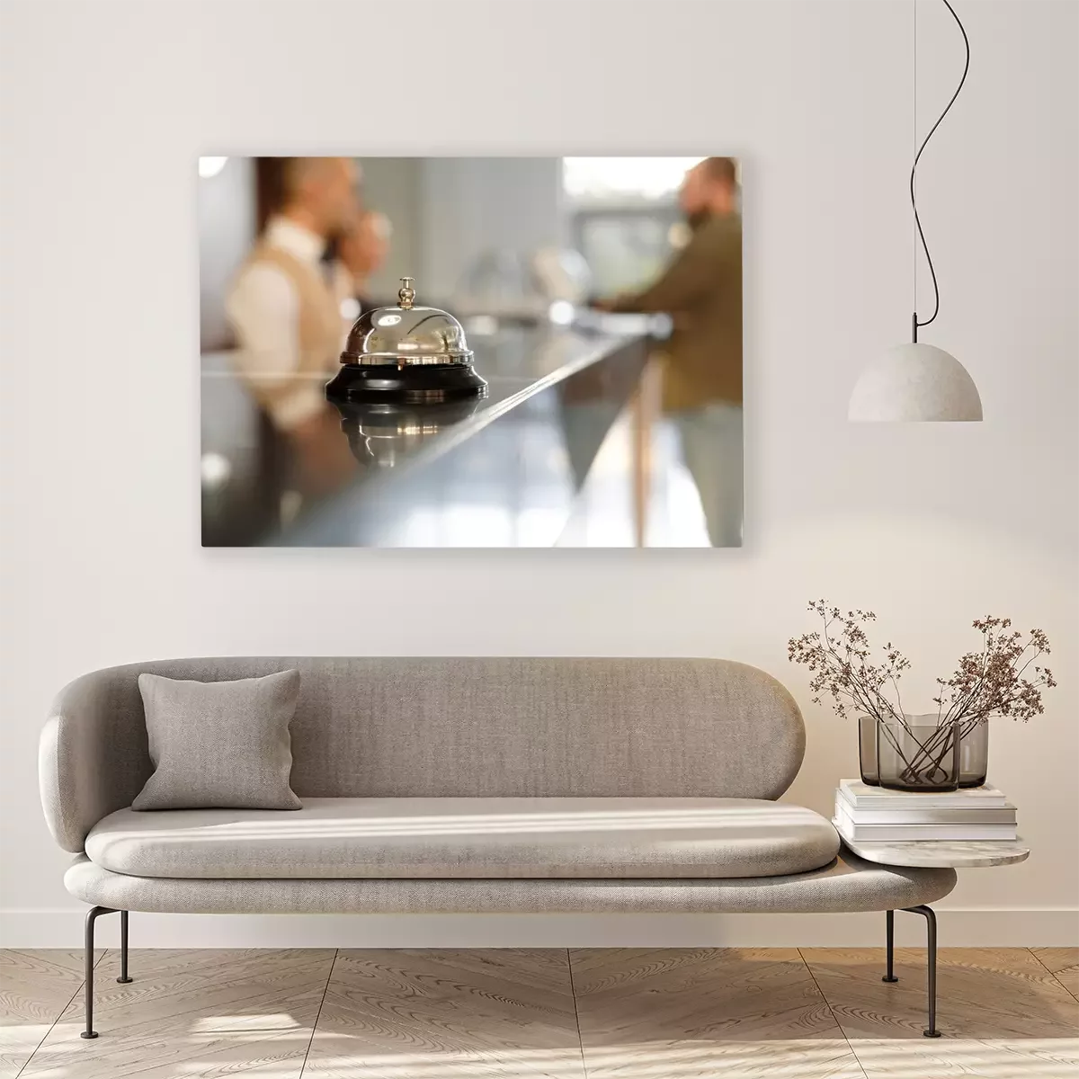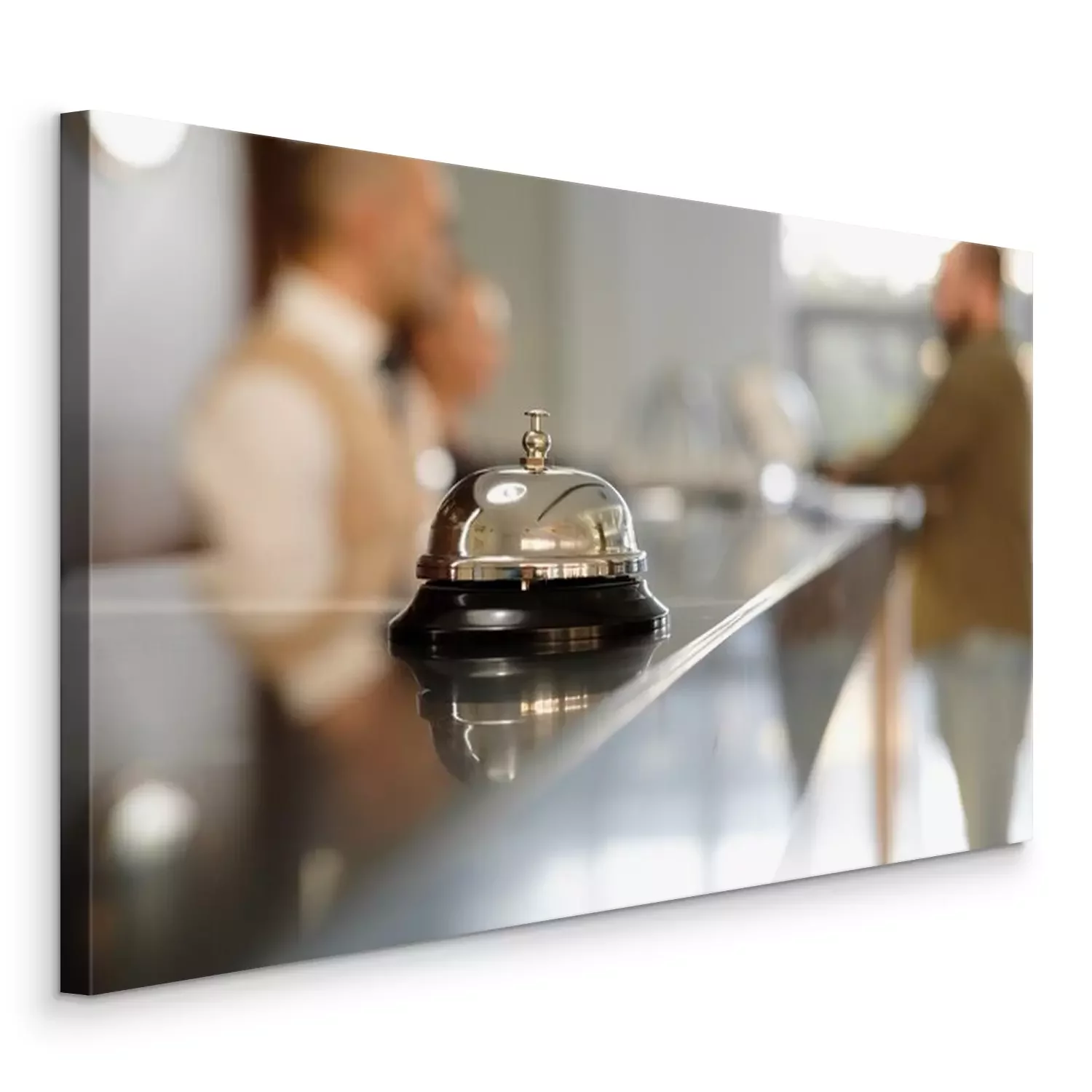 Canvas Moderne luxe hotel receptie balie met bel. Service Bell lokaliseren bij de receptie. Concept.