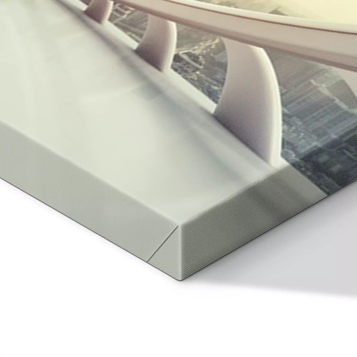 De print wordt aangebracht op hoogwaardig canvas dat op een schildersweefgetouw (spieraam) wordt gespannen. Omdat de print de zijranden bedekt, hoeft het ontwerp niet met een extra kader te worden omlijst. Wij raden ook composities aan die uit meerdere foto's bestaan en zo een coherente compositie vormen.