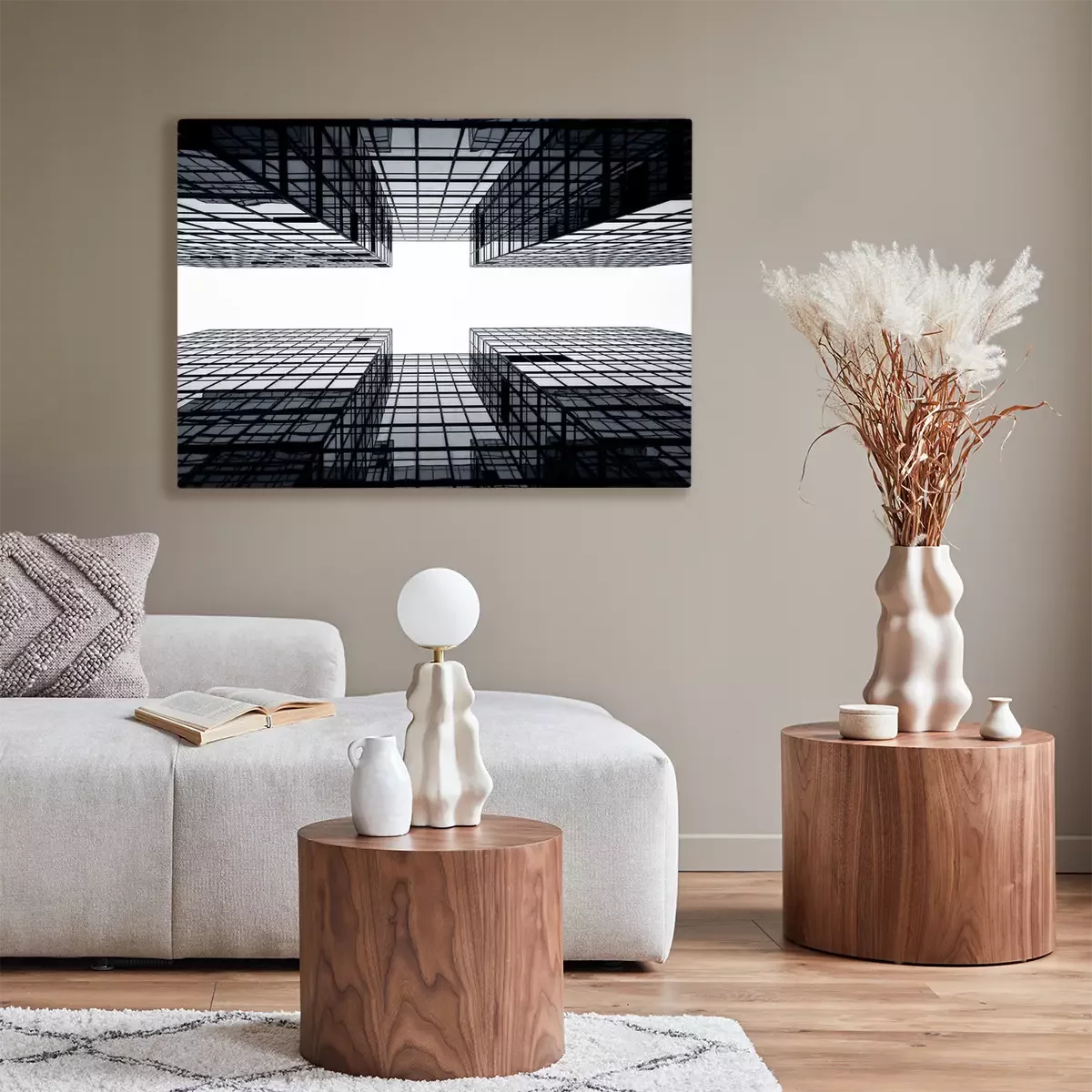 De print wordt aangebracht op hoogwaardig canvas dat op een schildersweefgetouw (spieraam) wordt gespannen. Omdat de print de zijranden bedekt, hoeft het ontwerp niet met een extra kader te worden omlijst. Wij raden ook composities aan die uit meerdere foto's bestaan en zo een coherente compositie vormen.