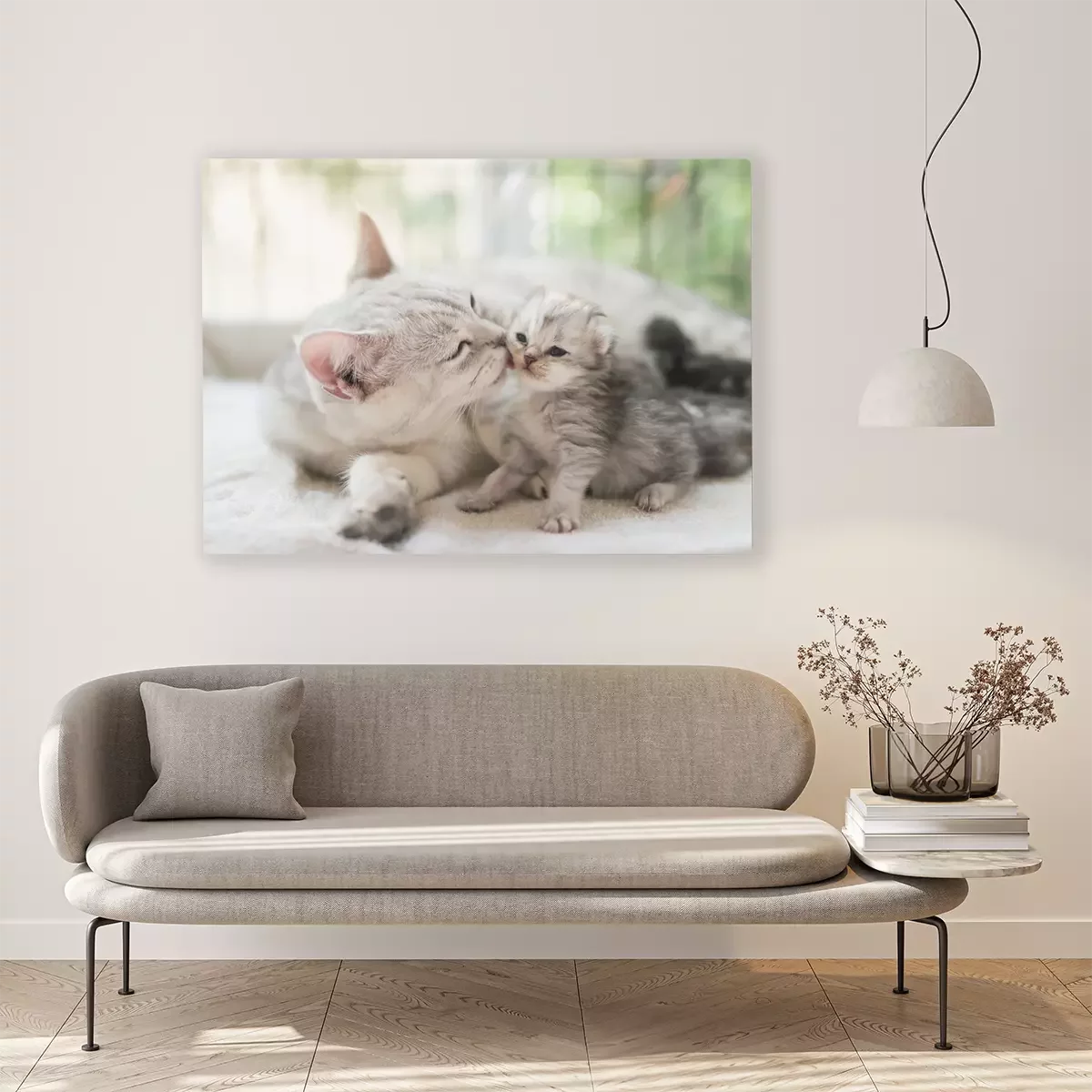 De print wordt aangebracht op hoogwaardig canvas dat op een schildersweefgetouw (spieraam) wordt gespannen. Omdat de print de zijranden bedekt, hoeft het ontwerp niet met een extra kader te worden omlijst. Wij raden ook composities aan die uit meerdere foto's bestaan en zo een coherente compositie vormen.