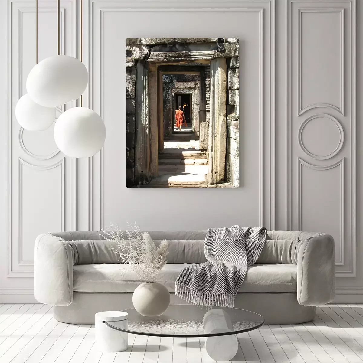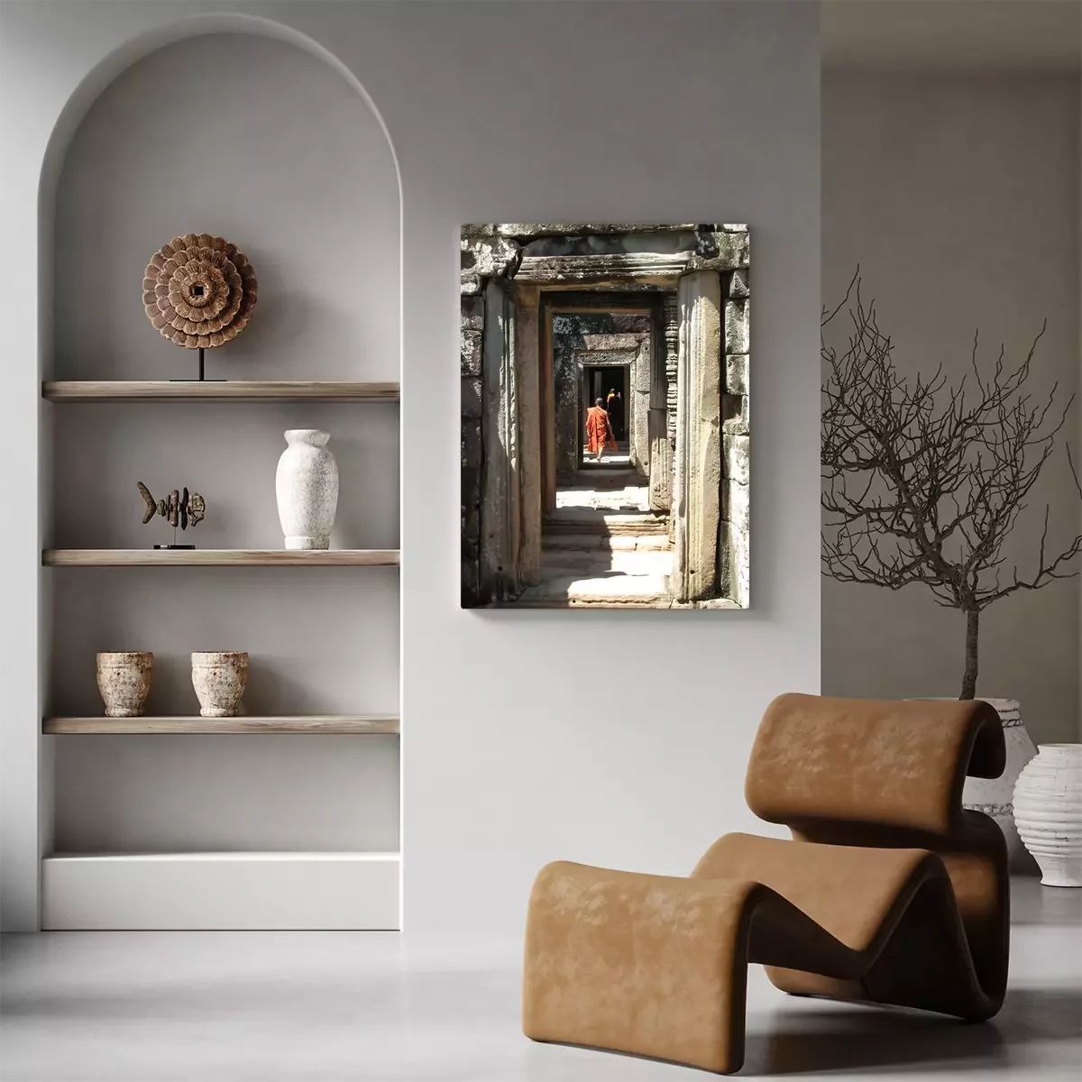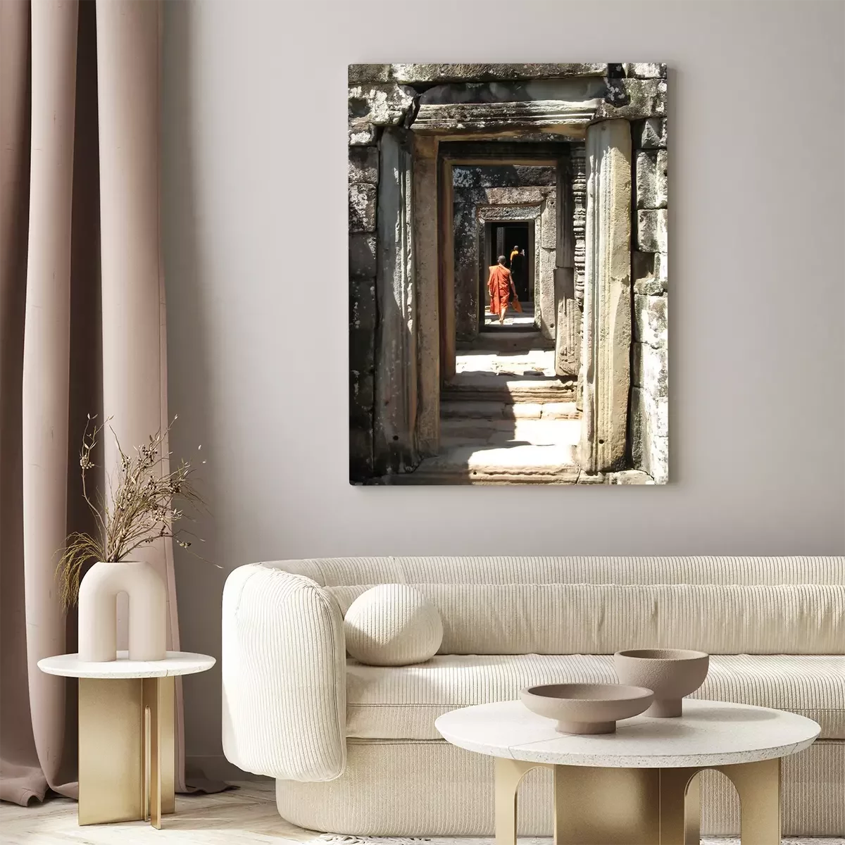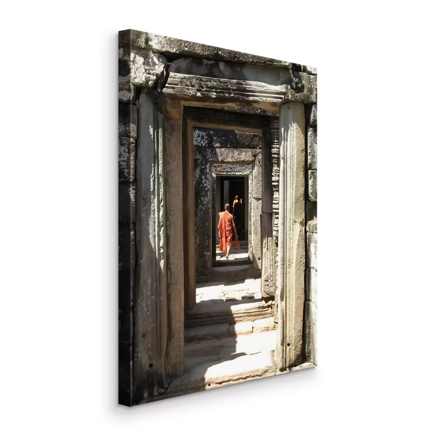 Canvas: monniken lopen door gangen op bantaey Kdei, een