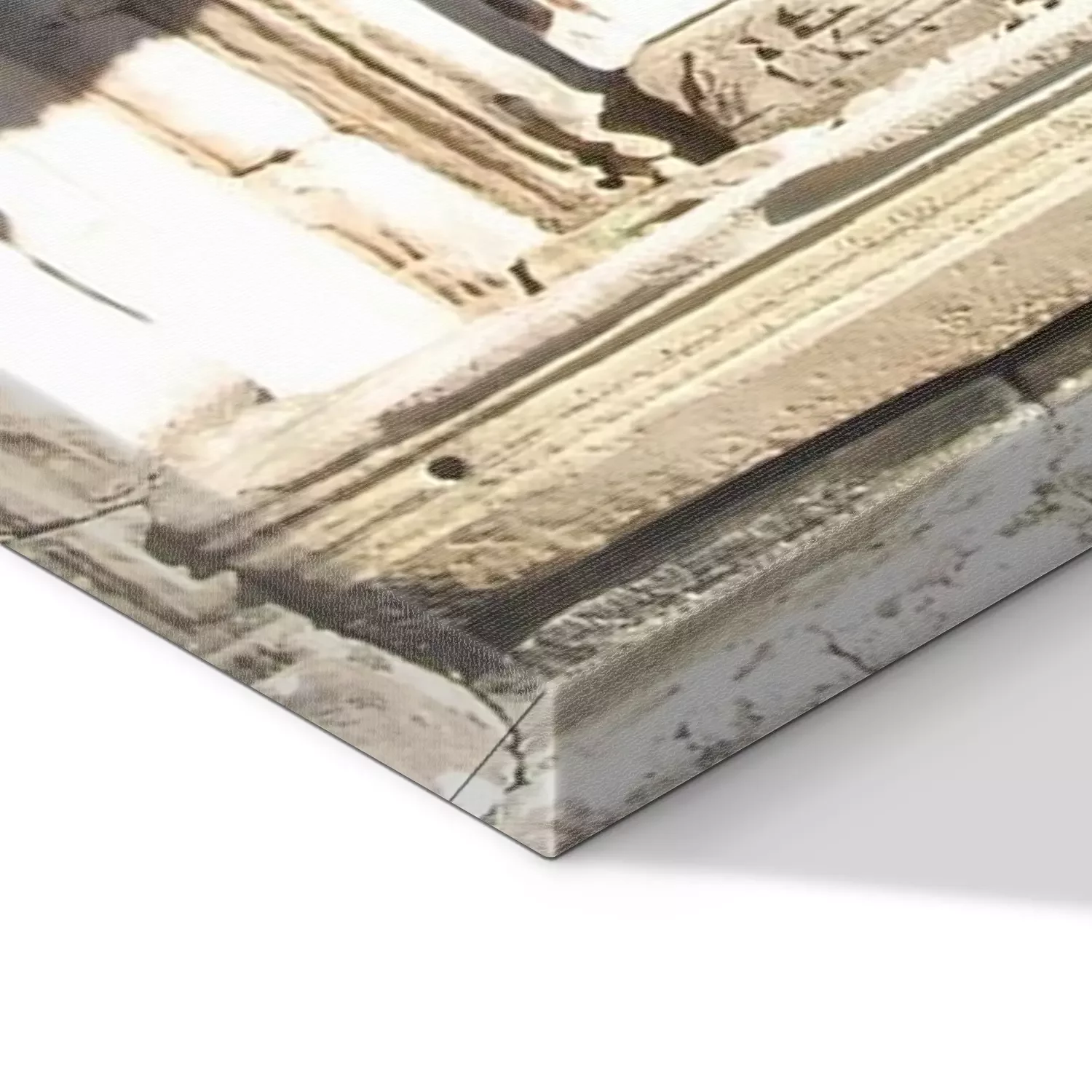 De print wordt aangebracht op hoogwaardig canvas dat op een schildersweefgetouw (spieraam) wordt gespannen. Omdat de print de zijranden bedekt, hoeft het ontwerp niet met een extra kader te worden omlijst. Wij raden ook composities aan die uit meerdere foto's bestaan en zo een coherente compositie vormen.