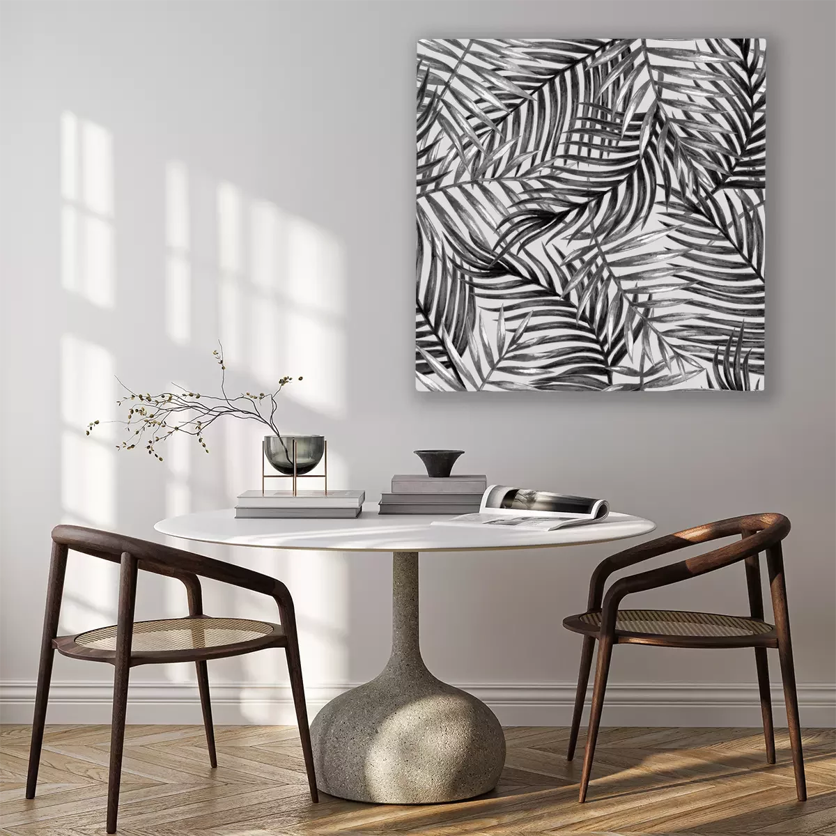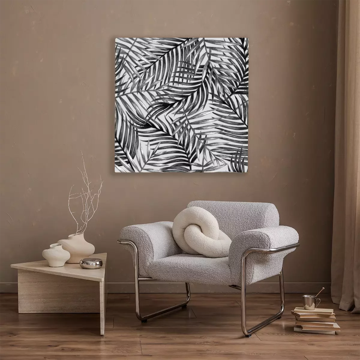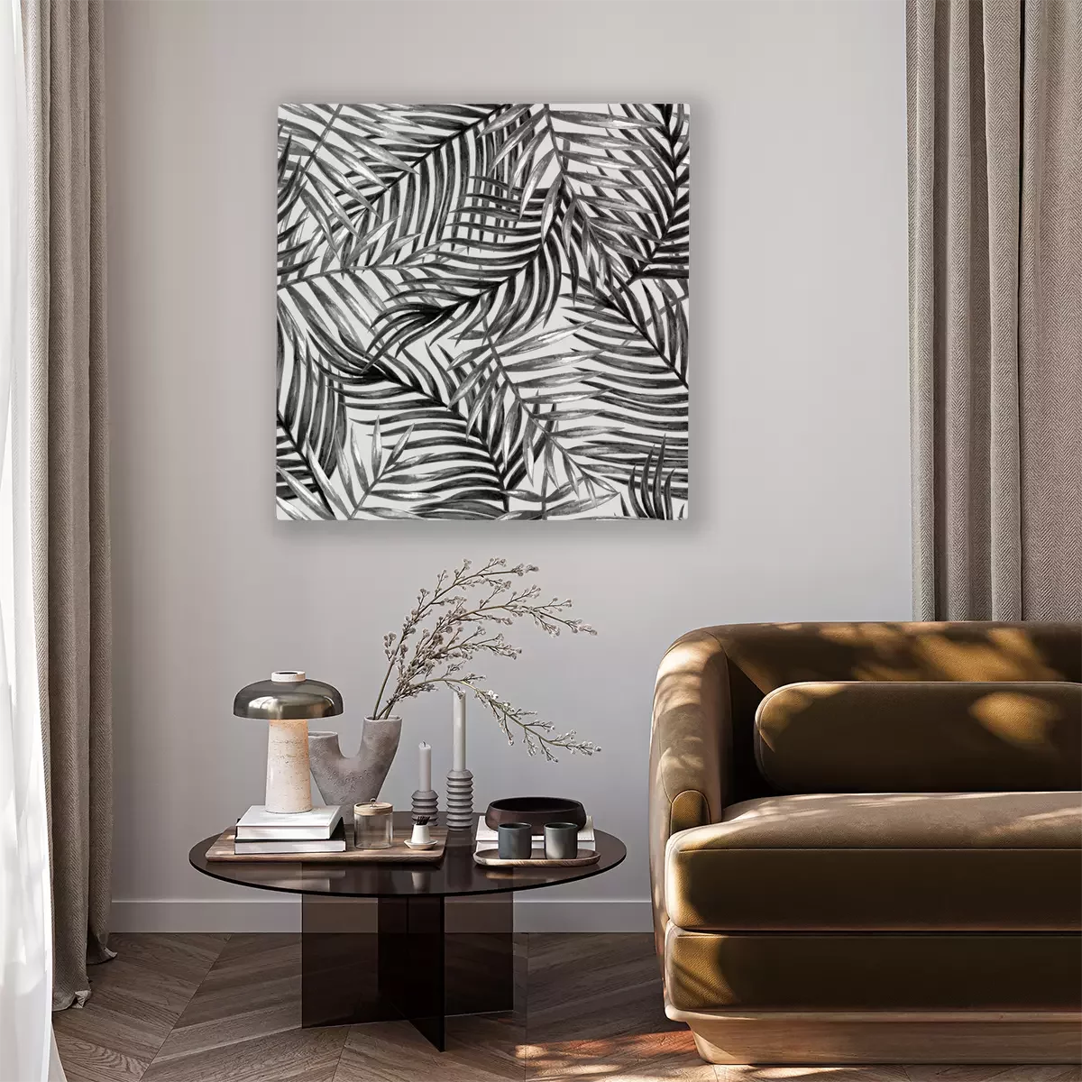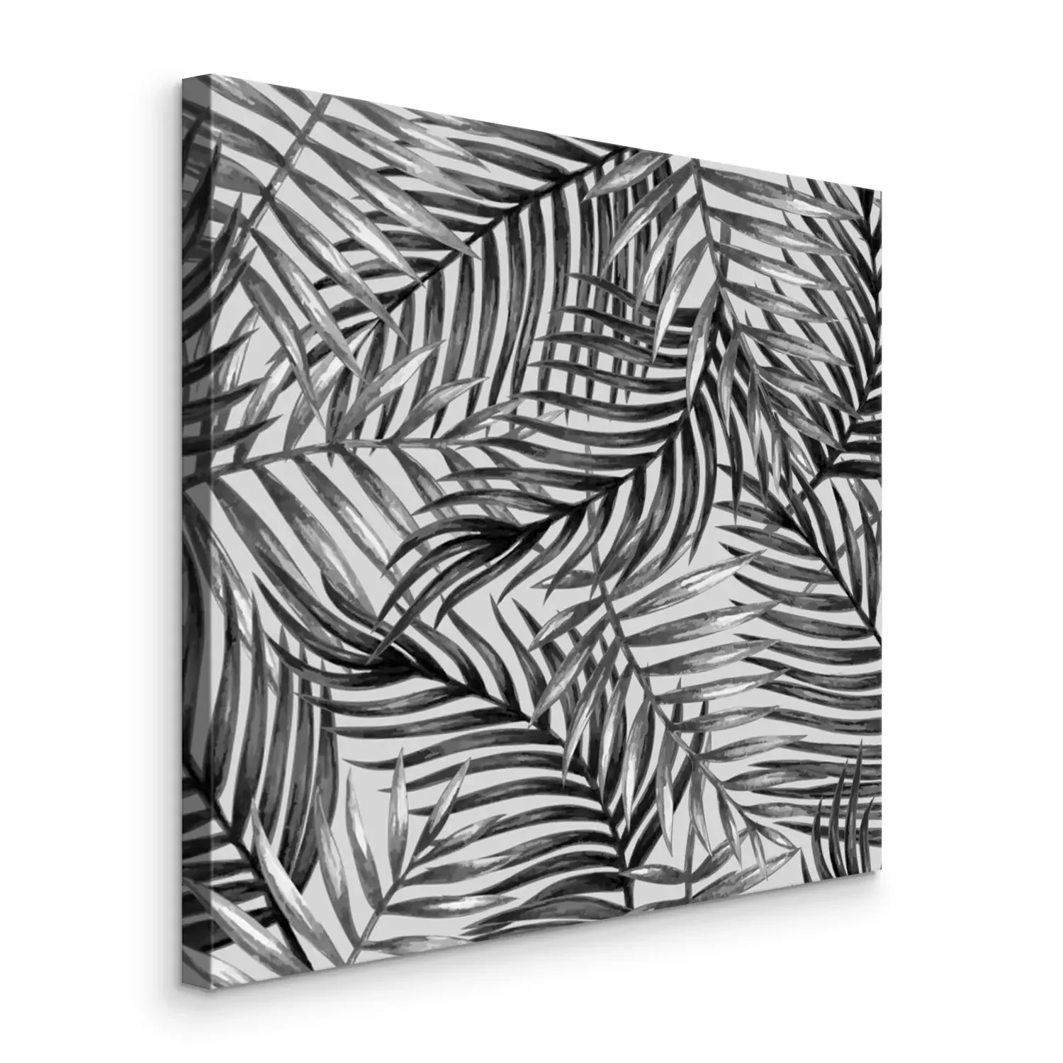 Canvas: Monochrome palmbladeren geschilderd in aquarel
