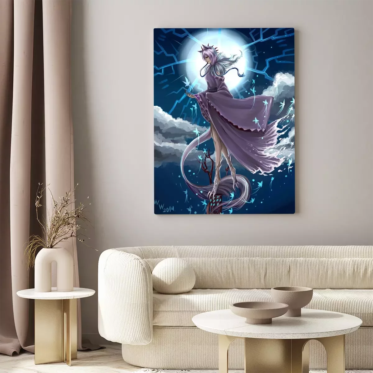 De print wordt aangebracht op hoogwaardig canvas dat op een schildersweefgetouw (spieraam) wordt gespannen. Omdat de print de zijranden bedekt, hoeft het ontwerp niet met een extra kader te worden omlijst. Wij raden ook composities aan die uit meerdere foto's bestaan en zo een coherente compositie vormen.