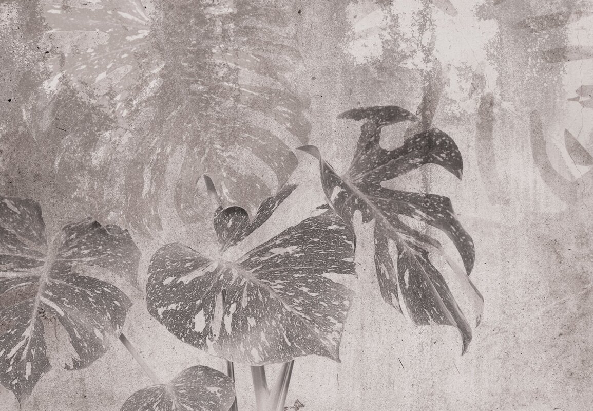 Canvas: Monstera bladeren botanisch patroon in grijs
