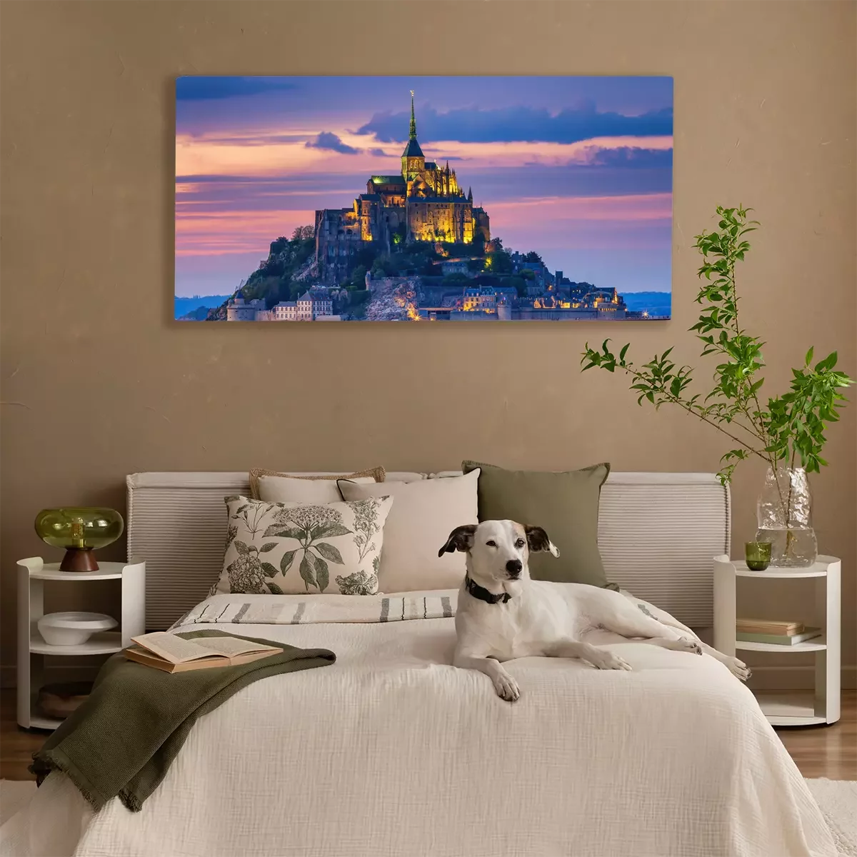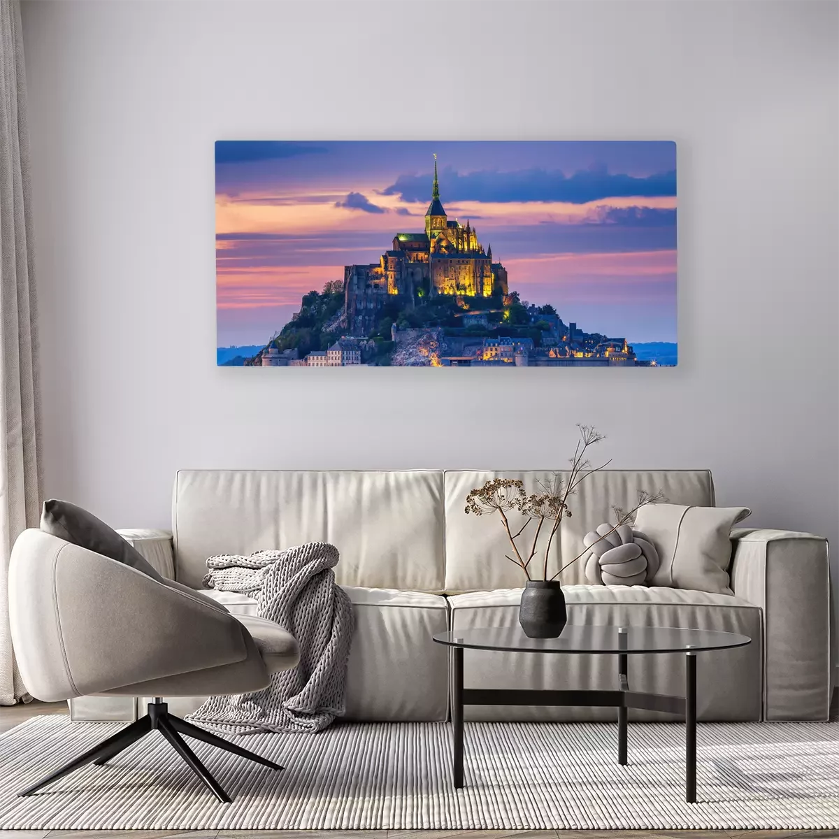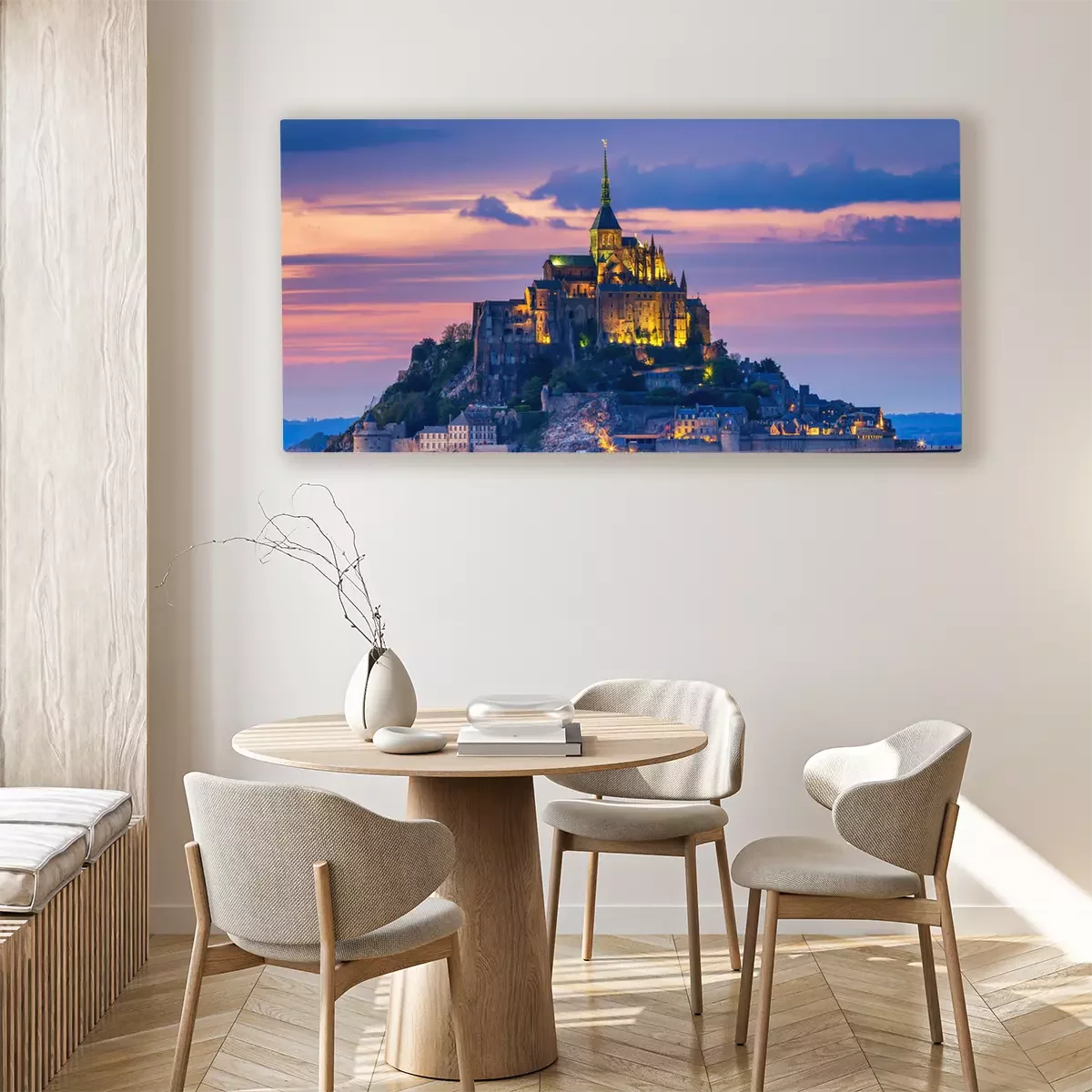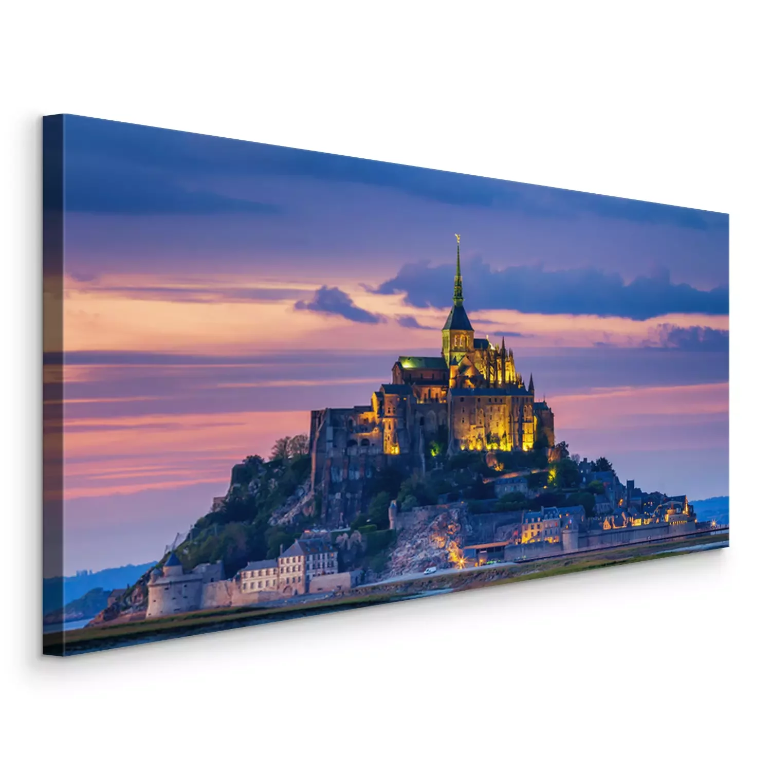 Canvas Mont Saint-Michel uitzicht in het zonsondergang licht. Normandië, Noord-Frankrijk