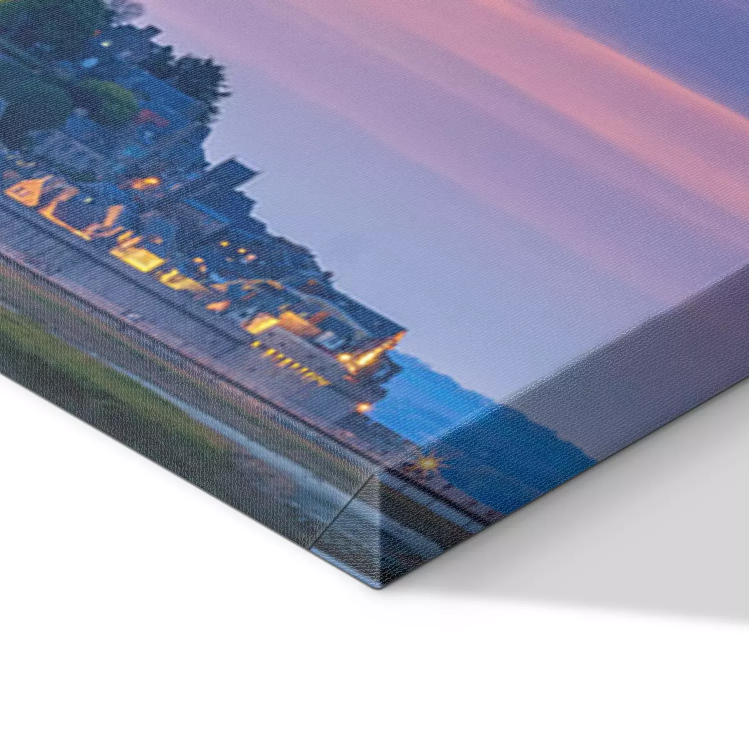 De print wordt aangebracht op hoogwaardig canvas dat op een schildersweefgetouw (spieraam) wordt gespannen. Omdat de print de zijranden bedekt, hoeft het ontwerp niet met een extra kader te worden omlijst. Wij raden ook composities aan die uit meerdere foto's bestaan en zo een coherente compositie vormen.