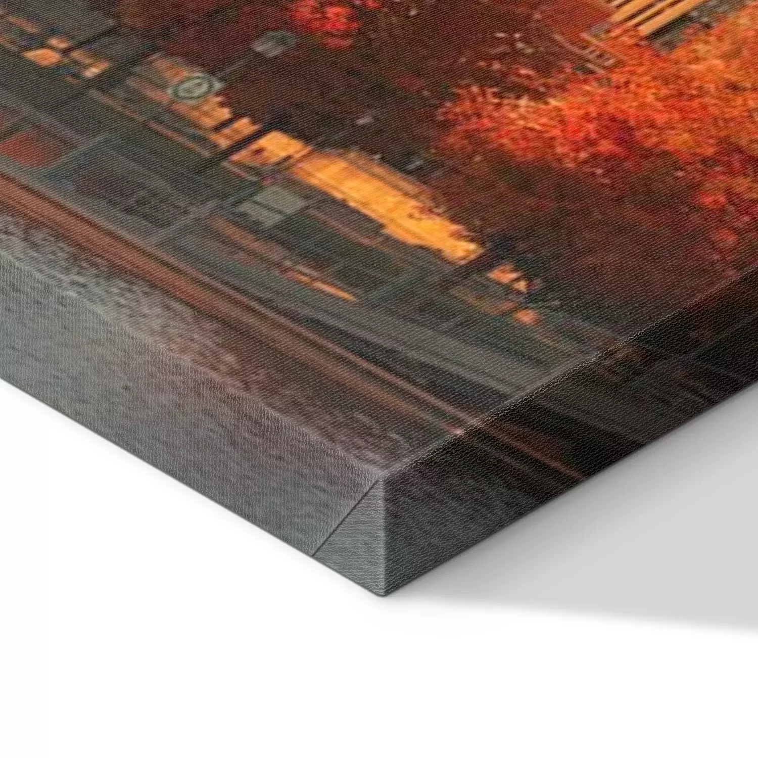 De print wordt aangebracht op hoogwaardig canvas dat op een schildersweefgetouw (spieraam) wordt gespannen. Omdat de print de zijranden bedekt, hoeft het ontwerp niet met een extra kader te worden omlijst. Wij raden ook composities aan die uit meerdere foto's bestaan en zo een coherente compositie vormen.