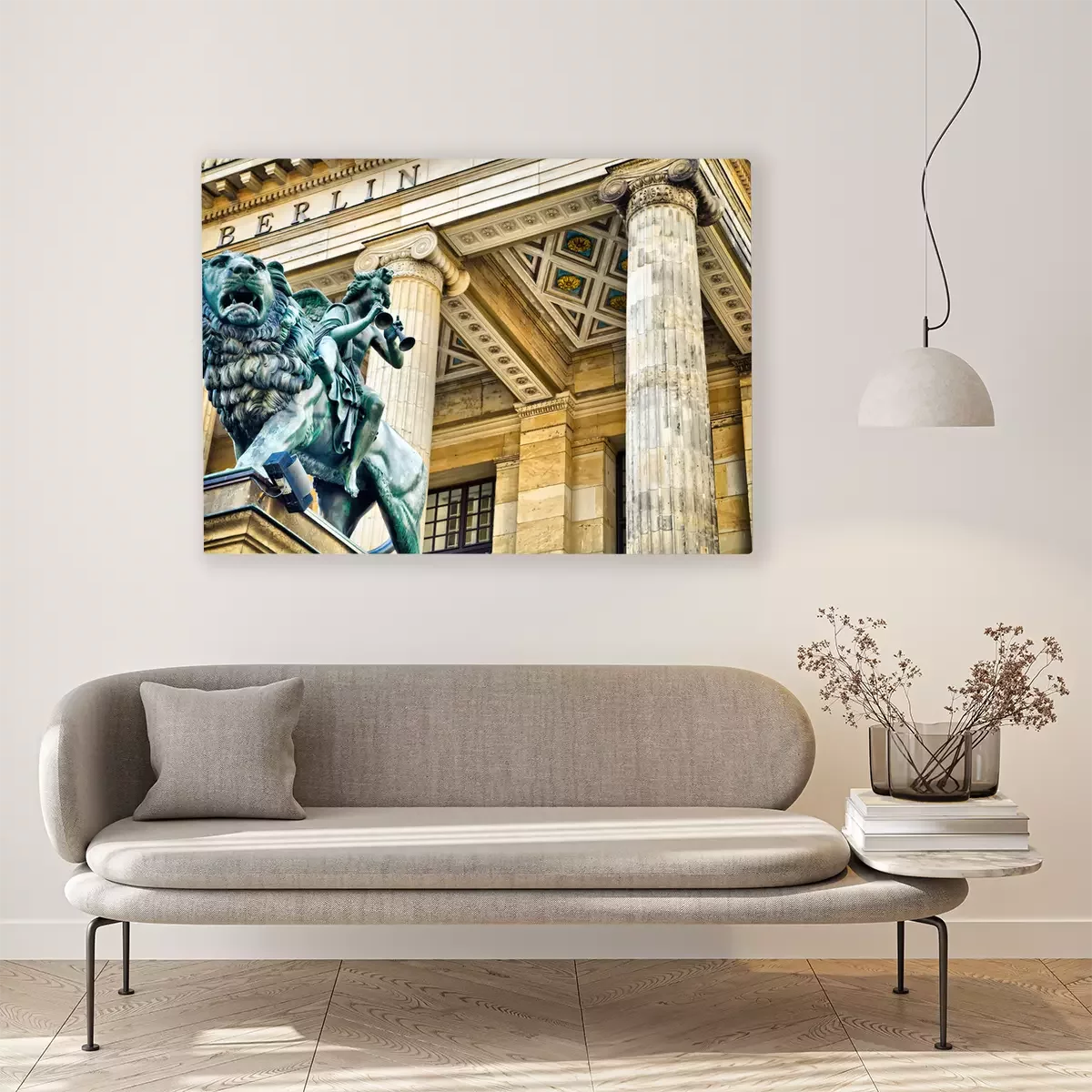 De print wordt aangebracht op hoogwaardig canvas dat op een schildersweefgetouw (spieraam) wordt gespannen. Omdat de print de zijranden bedekt, hoeft het ontwerp niet met een extra kader te worden omlijst. Wij raden ook composities aan die uit meerdere foto's bestaan en zo een coherente compositie vormen.