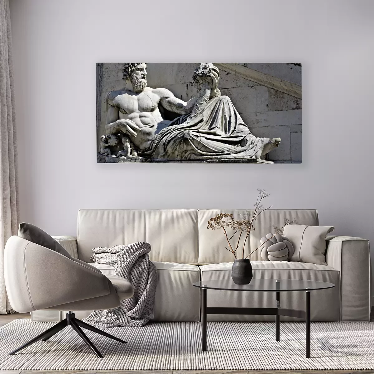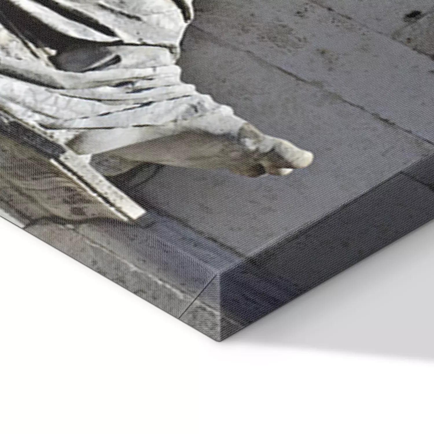 De print wordt aangebracht op hoogwaardig canvas dat op een schildersweefgetouw (spieraam) wordt gespannen. Omdat de print de zijranden bedekt, hoeft het ontwerp niet met een extra kader te worden omlijst. Wij raden ook composities aan die uit meerdere foto's bestaan en zo een coherente compositie vormen.