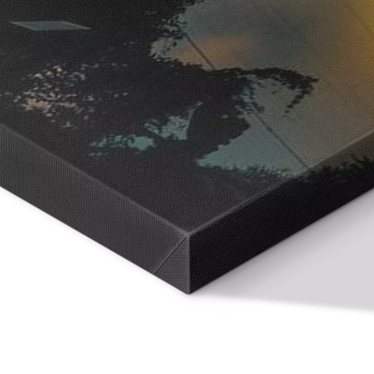 De print wordt aangebracht op hoogwaardig canvas dat op een schildersweefgetouw (spieraam) wordt gespannen. Omdat de print de zijranden bedekt, hoeft het ontwerp niet met een extra kader te worden omlijst. Wij raden ook composities aan die uit meerdere foto's bestaan en zo een coherente compositie vormen.