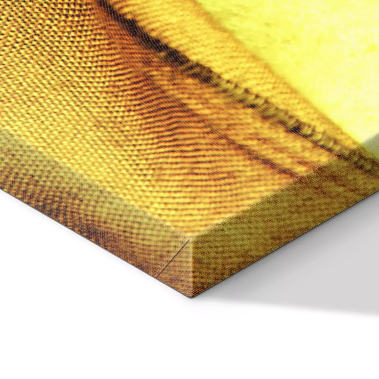 De print wordt aangebracht op hoogwaardig canvas dat op een schildersweefgetouw (spieraam) wordt gespannen. Omdat de print de zijranden bedekt, hoeft het ontwerp niet met een extra kader te worden omlijst. Wij raden ook composities aan die uit meerdere foto's bestaan en zo een coherente compositie vormen.