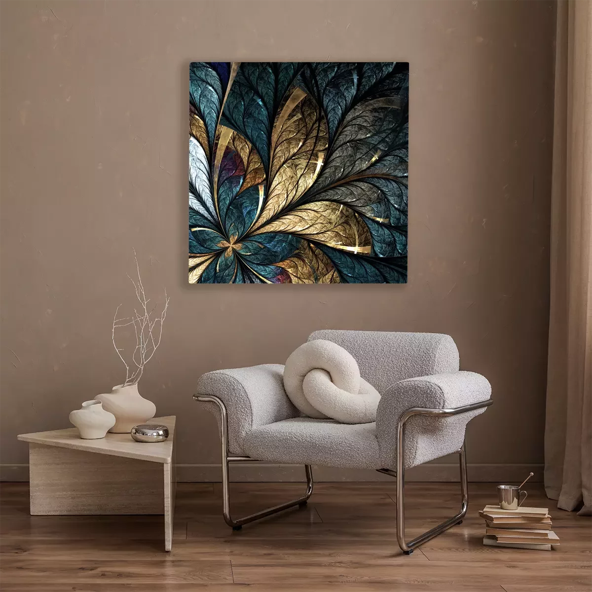 Canvas: Mooi bloempatroon in glas-in-lood raam stijl.