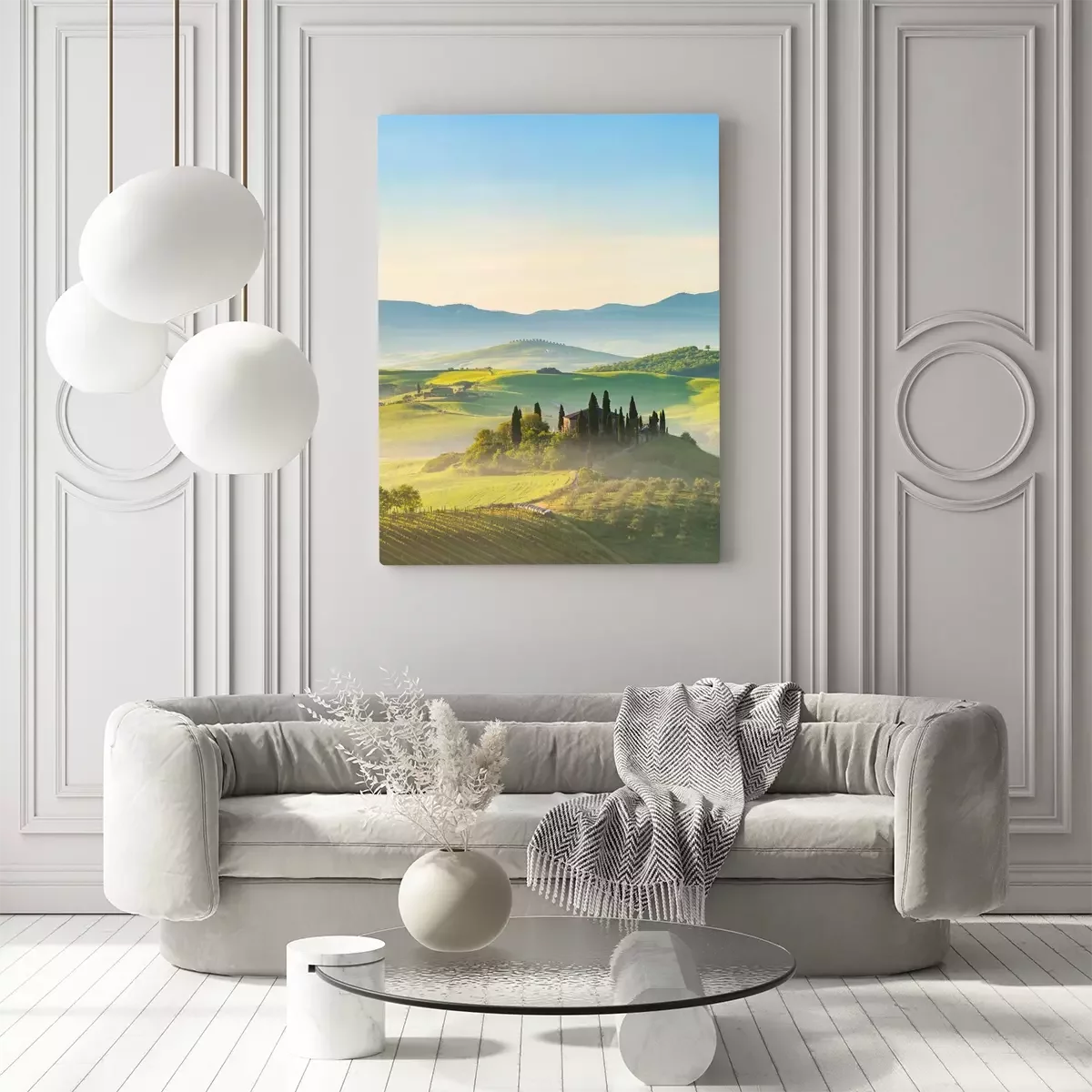 Canvas: Mooi mistig landschap in Toscane, Italië
