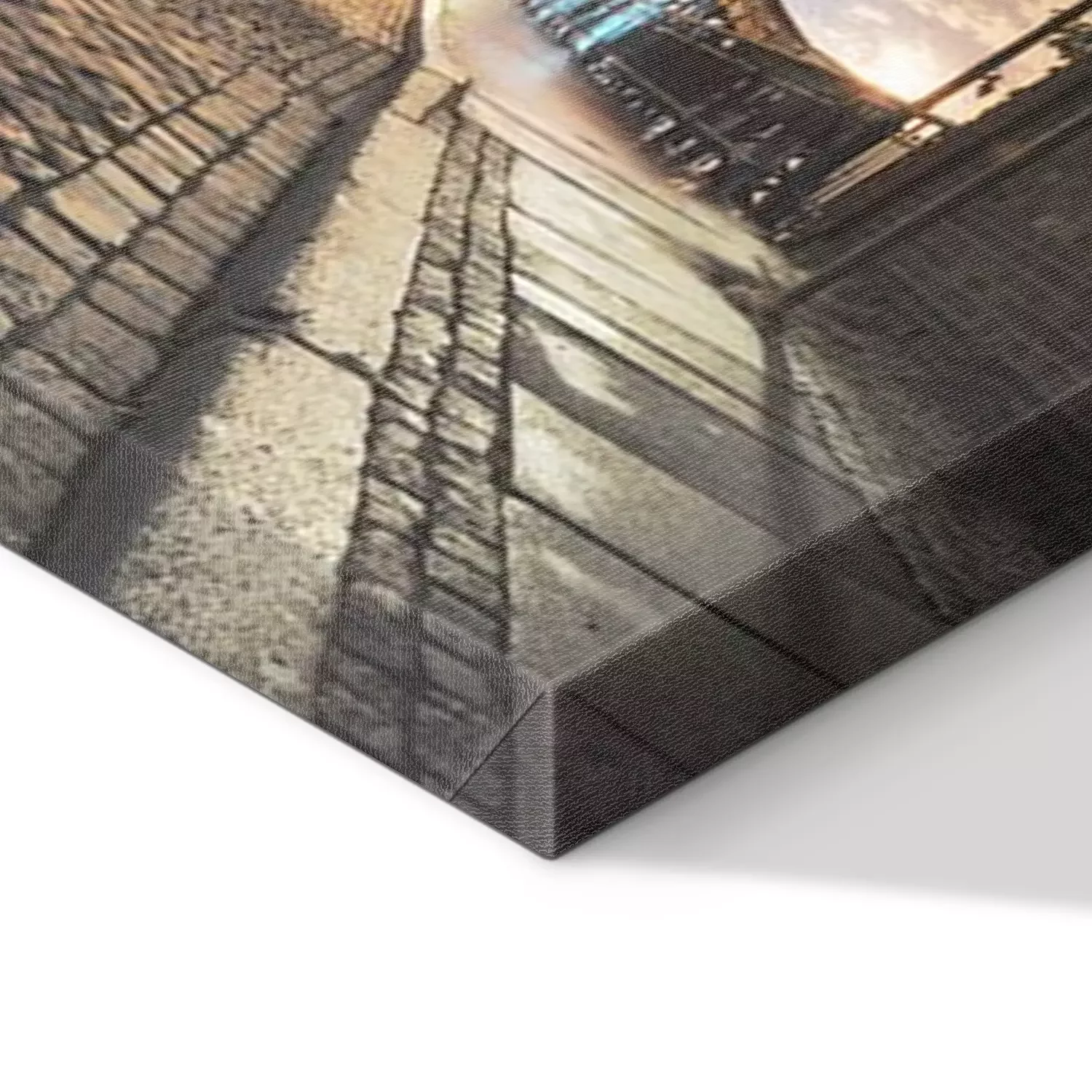 De print wordt aangebracht op hoogwaardig canvas dat op een schildersweefgetouw (spieraam) wordt gespannen. Omdat de print de zijranden bedekt, hoeft het ontwerp niet met een extra kader te worden omlijst. Wij raden ook composities aan die uit meerdere foto's bestaan en zo een coherente compositie vormen.