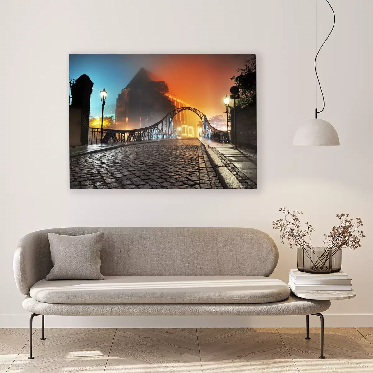 Canvas: Mooi uitzicht op de oude stad brug bij nacht