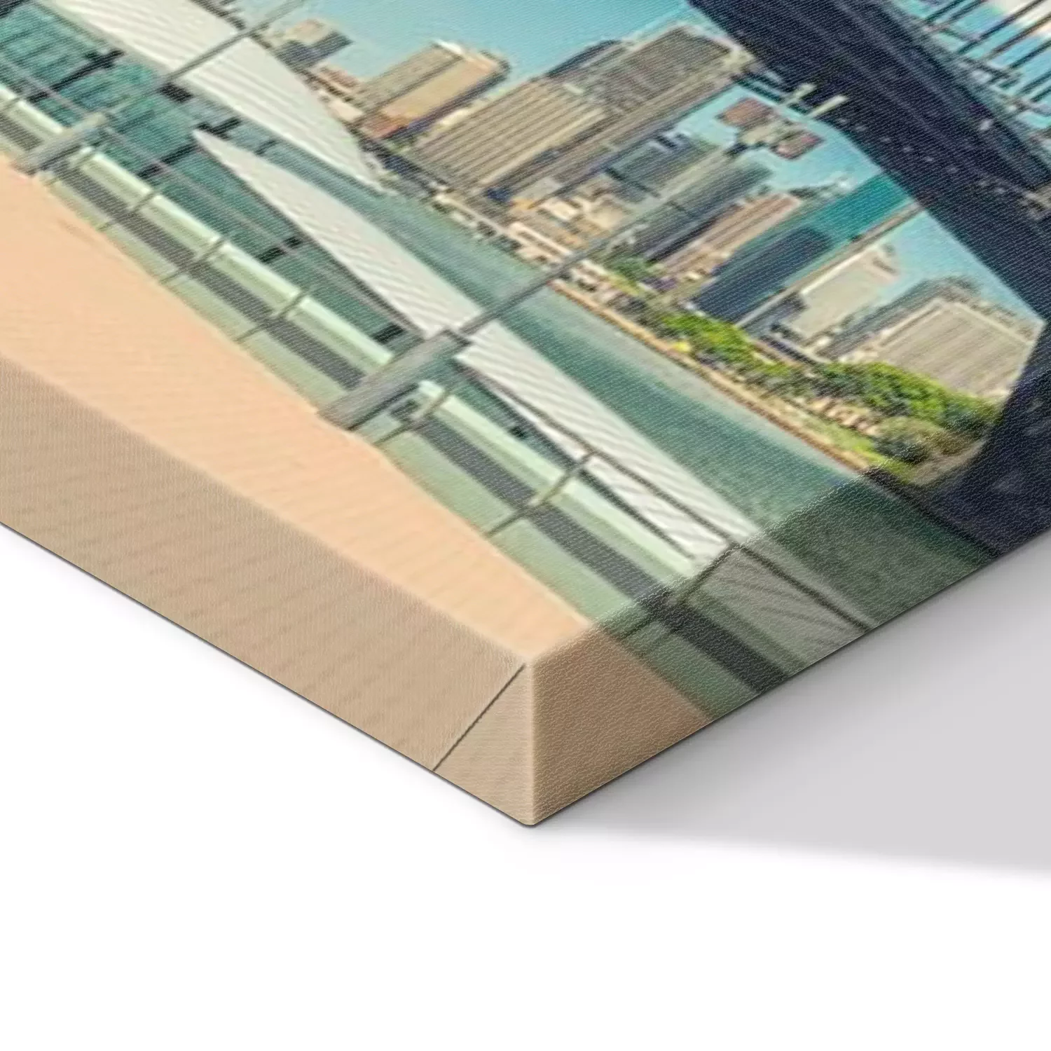 De print wordt aangebracht op hoogwaardig canvas dat op een schildersweefgetouw (spieraam) wordt gespannen. Omdat de print de zijranden bedekt, hoeft het ontwerp niet met een extra kader te worden omlijst. Wij raden ook composities aan die uit meerdere foto's bestaan en zo een coherente compositie vormen.