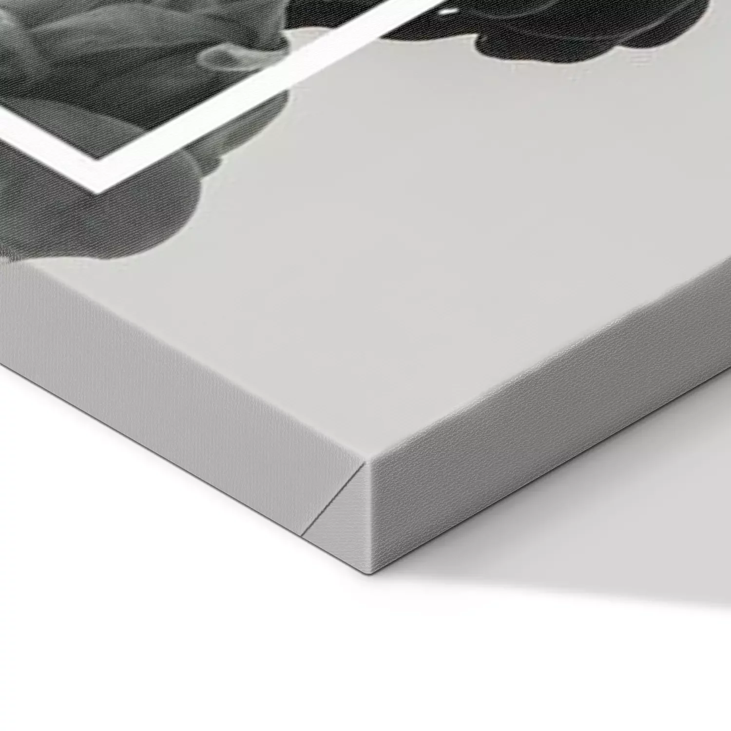 De print wordt aangebracht op hoogwaardig canvas dat op een schildersweefgetouw (spieraam) wordt gespannen. Omdat de print de zijranden bedekt, hoeft het ontwerp niet met een extra kader te worden omlijst. Wij raden ook composities aan die uit meerdere foto's bestaan en zo een coherente compositie vormen.