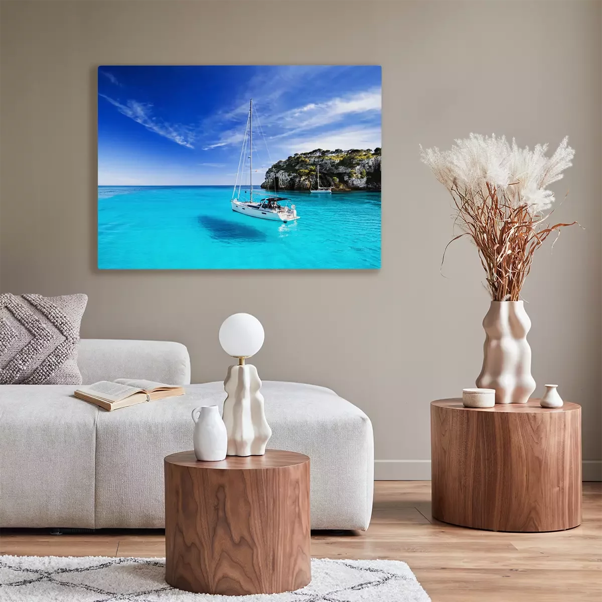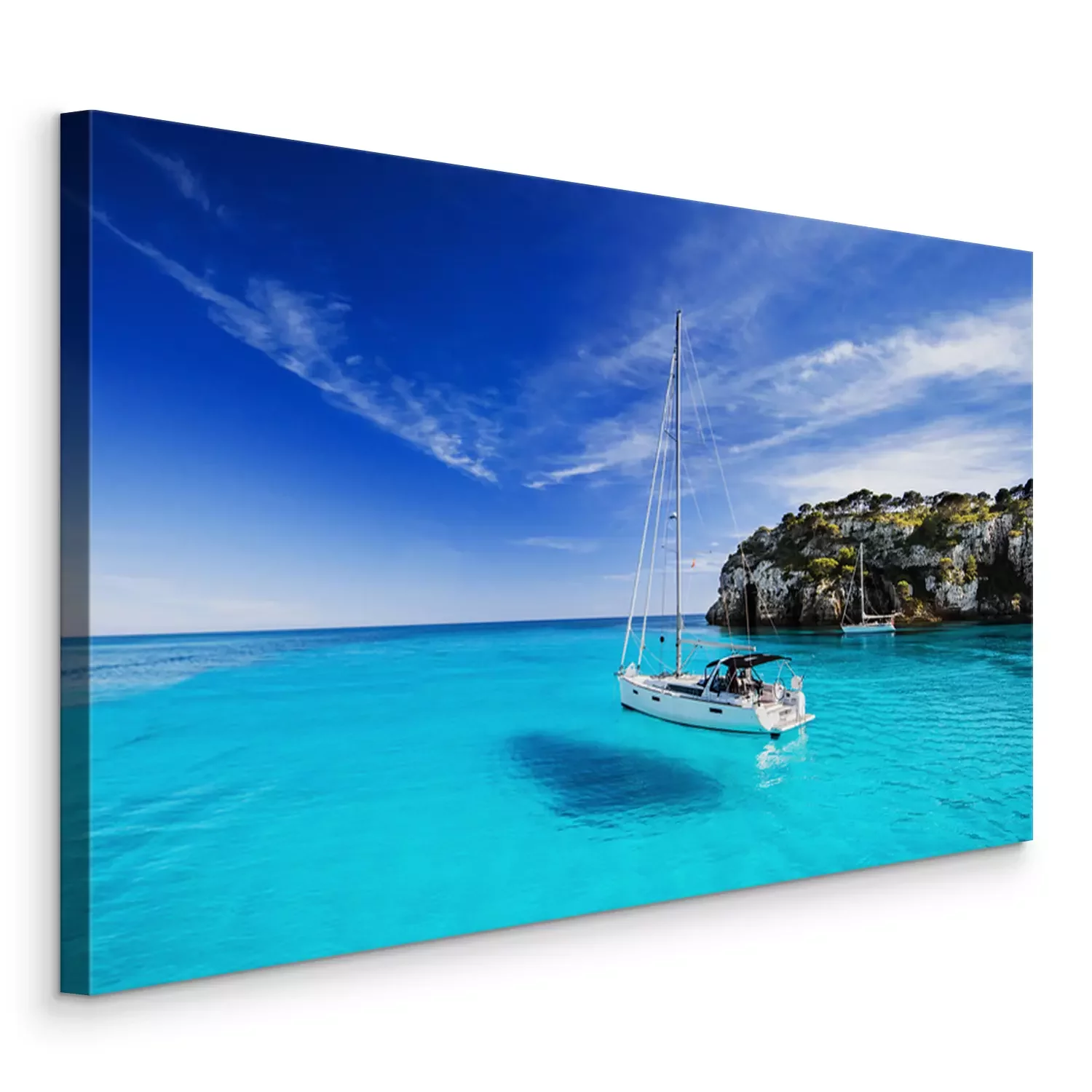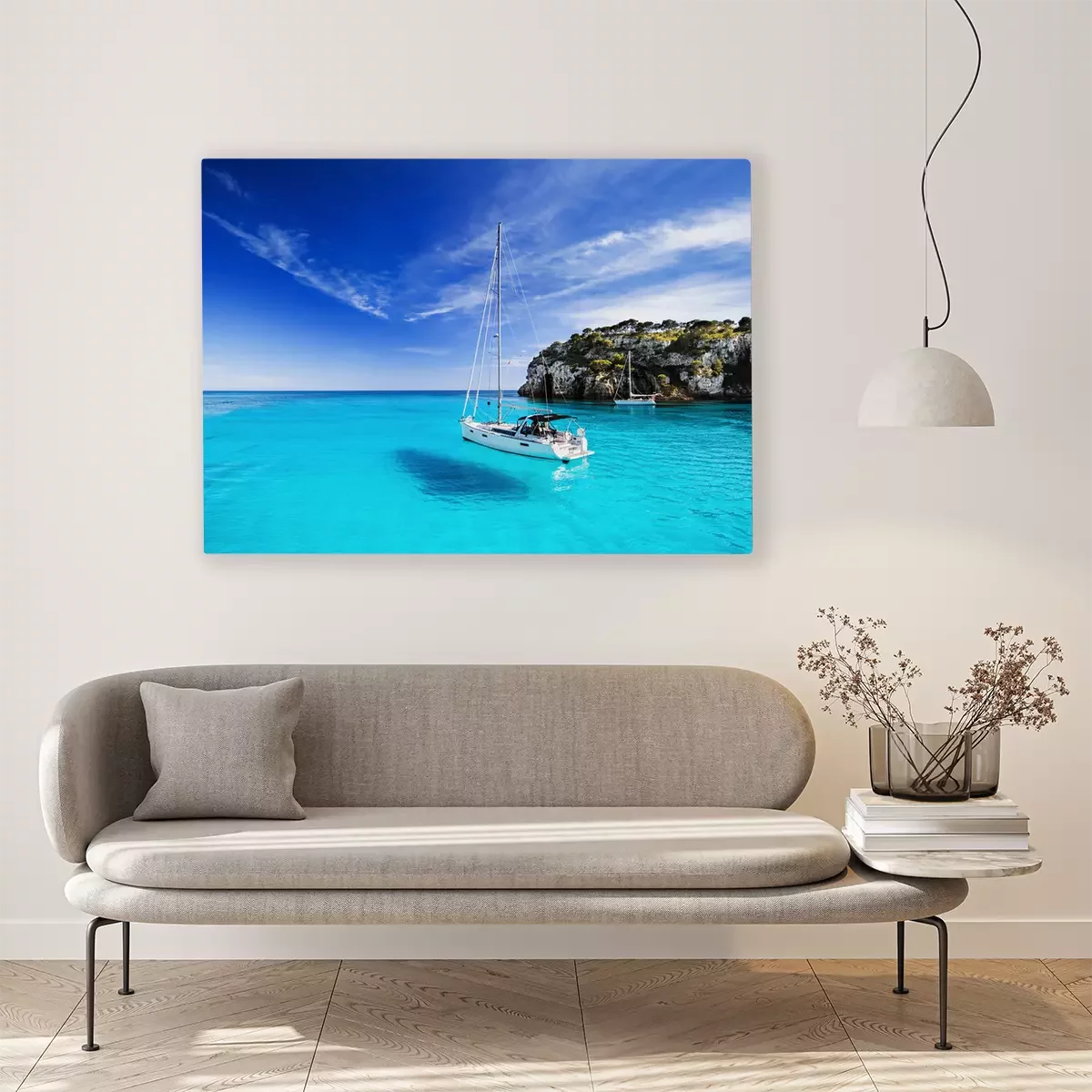 Canvas Mooie baai met zeilboten, eiland Menorca, Spanje
