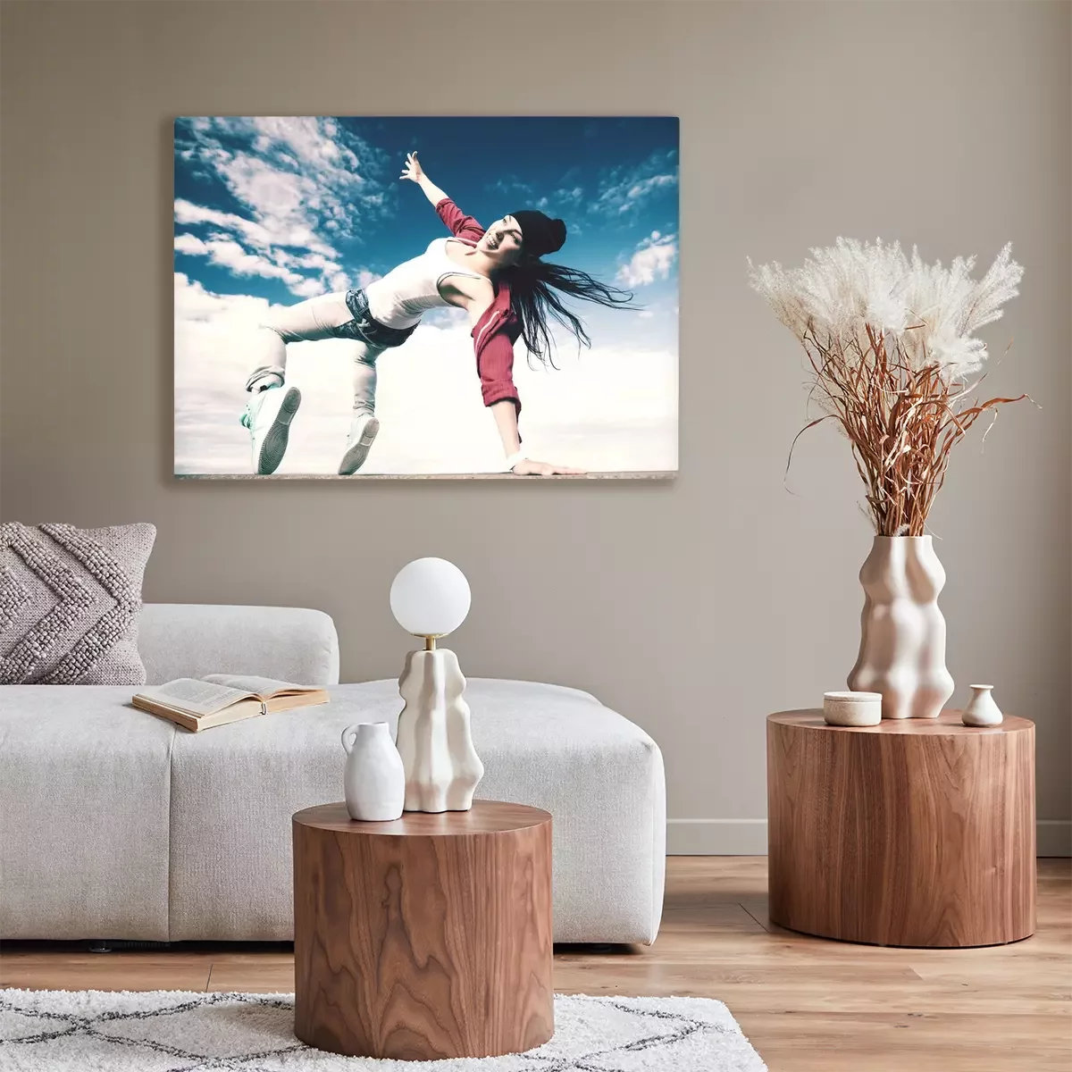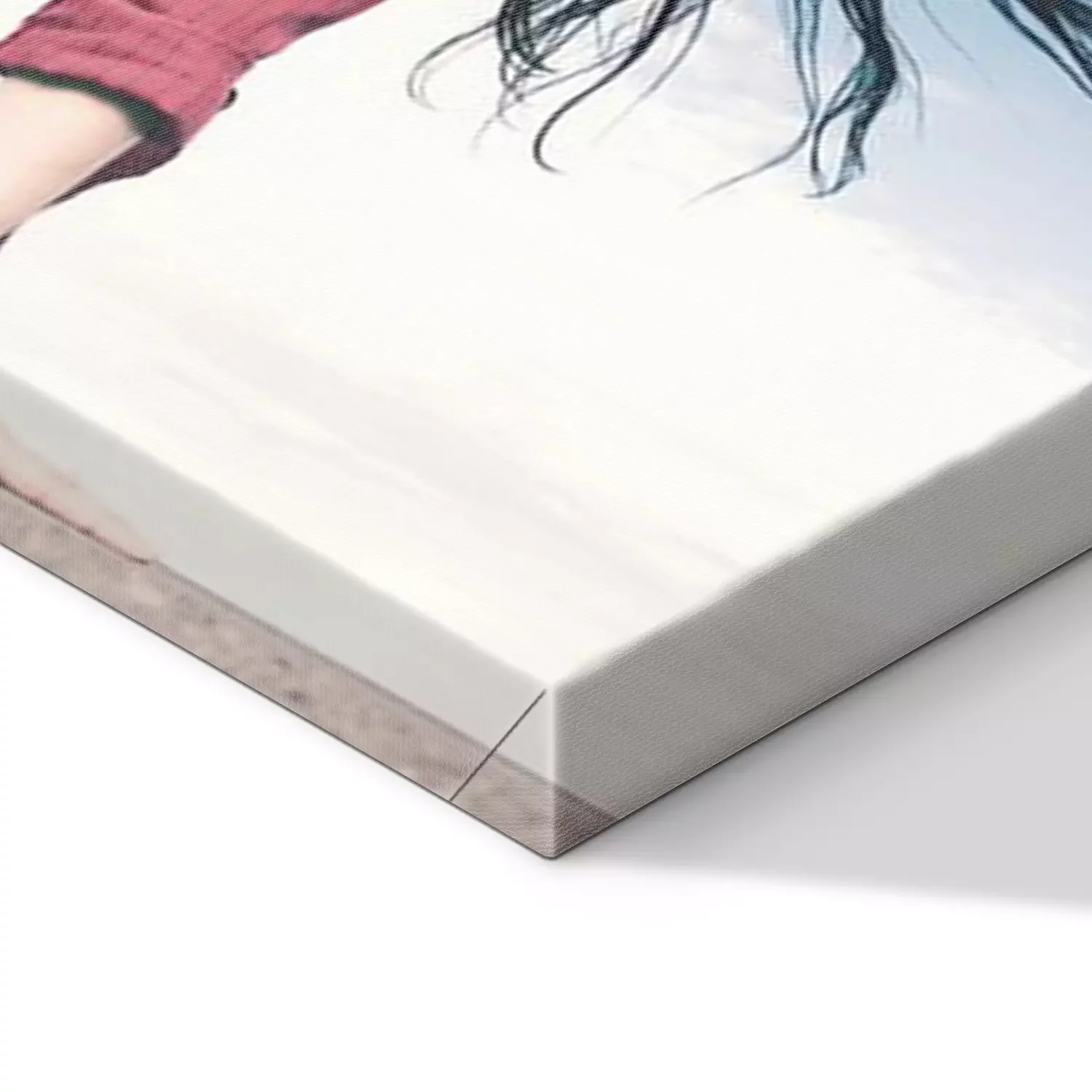 De print wordt aangebracht op hoogwaardig canvas dat op een schildersweefgetouw (spieraam) wordt gespannen. Omdat de print de zijranden bedekt, hoeft het ontwerp niet met een extra kader te worden omlijst. Wij raden ook composities aan die uit meerdere foto's bestaan en zo een coherente compositie vormen.