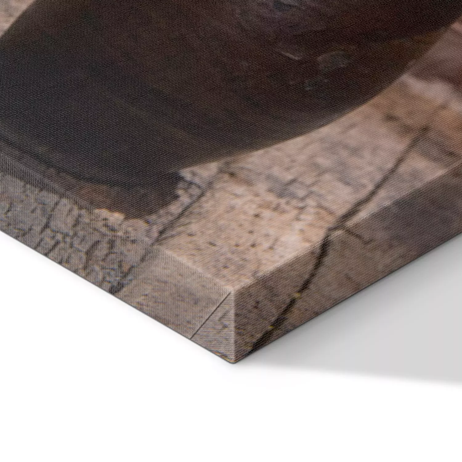 De print wordt aangebracht op hoogwaardig canvas dat op een schildersweefgetouw (spieraam) wordt gespannen. Omdat de print de zijranden bedekt, hoeft het ontwerp niet met een extra kader te worden omlijst. Wij raden ook composities aan die uit meerdere foto's bestaan en zo een coherente compositie vormen.