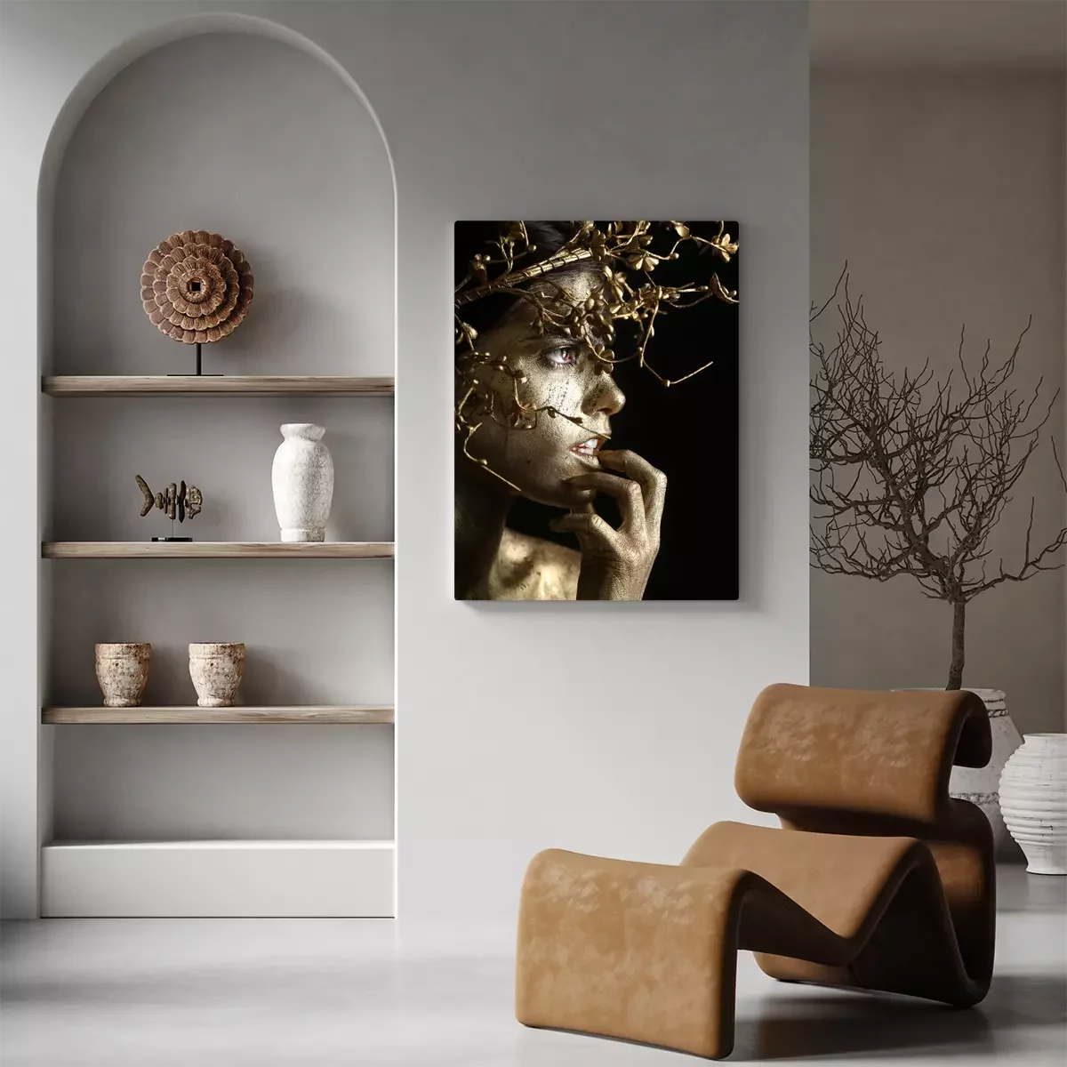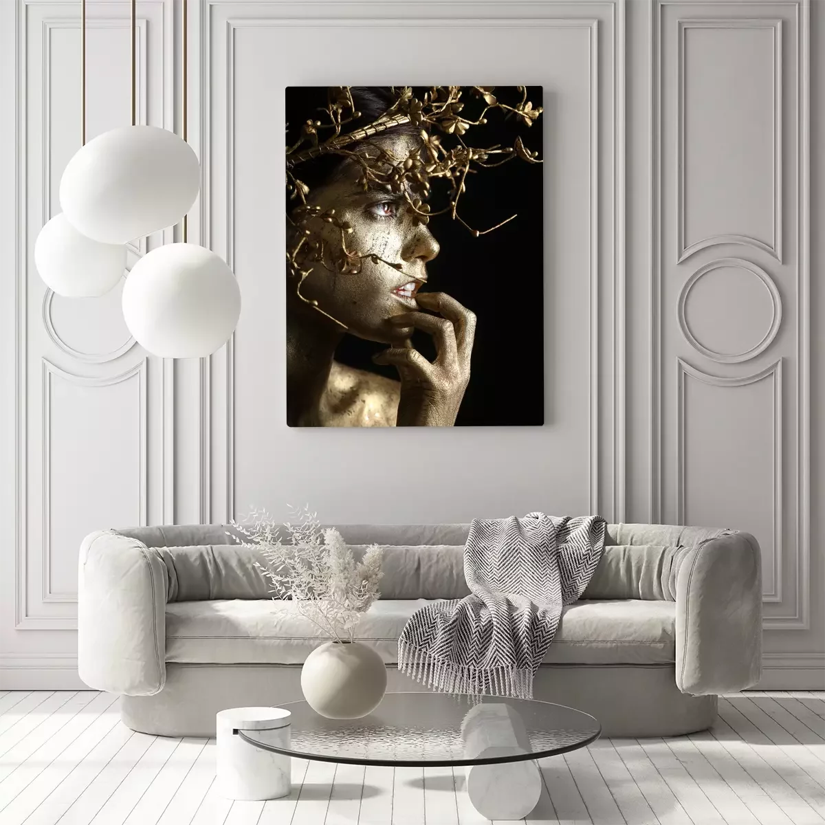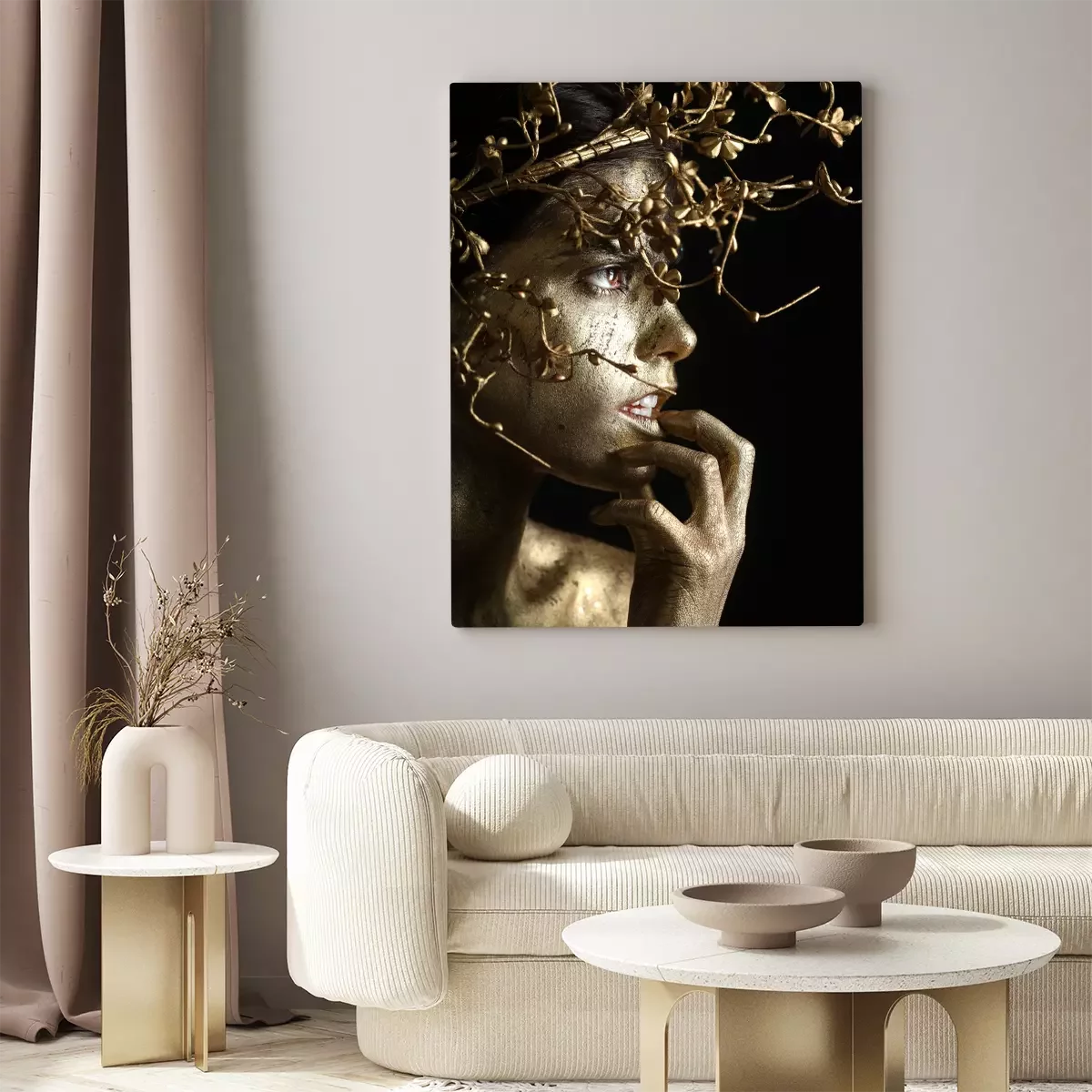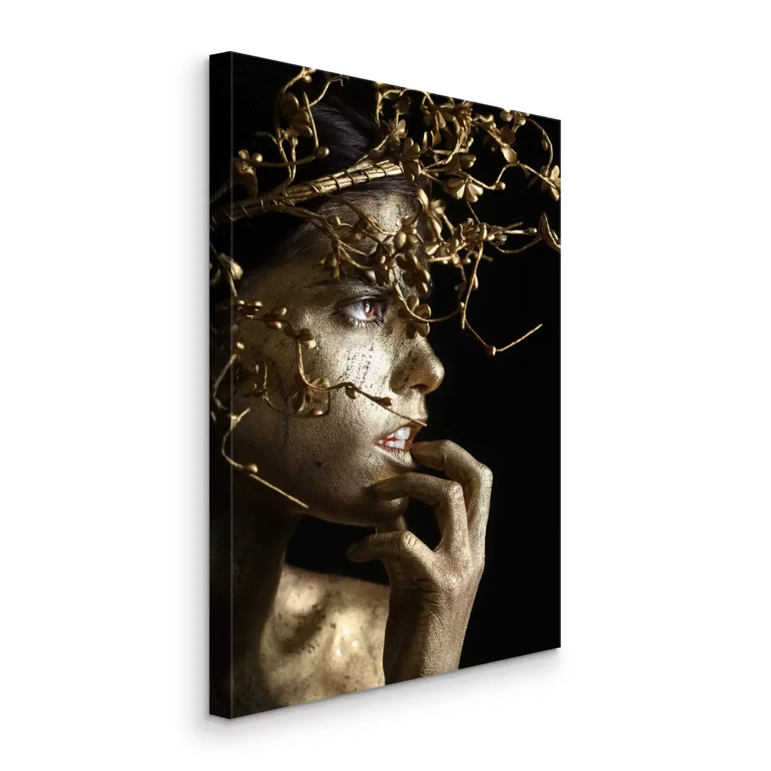Canvas: Mooie goud geschilderde Vrouw in Conceptueel Beauty thema afbeelding