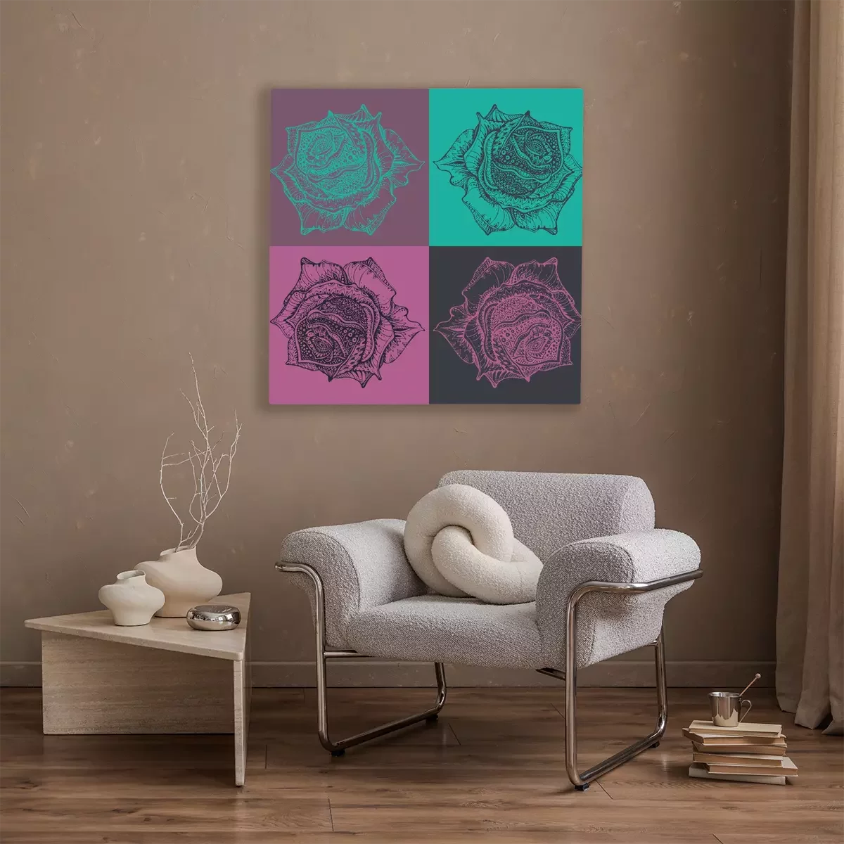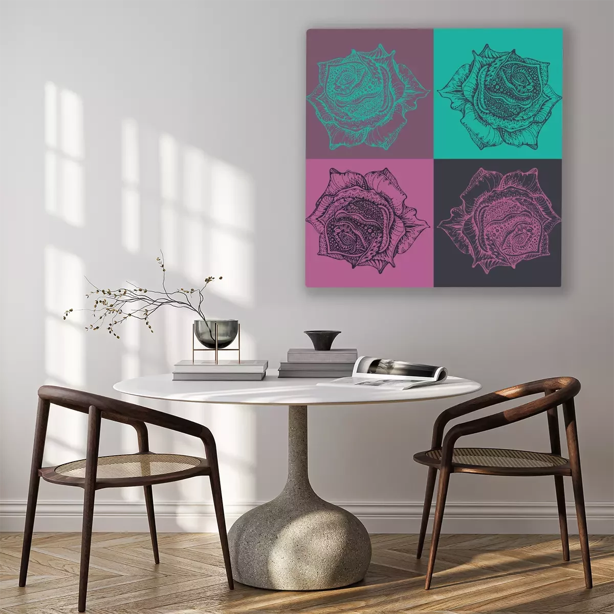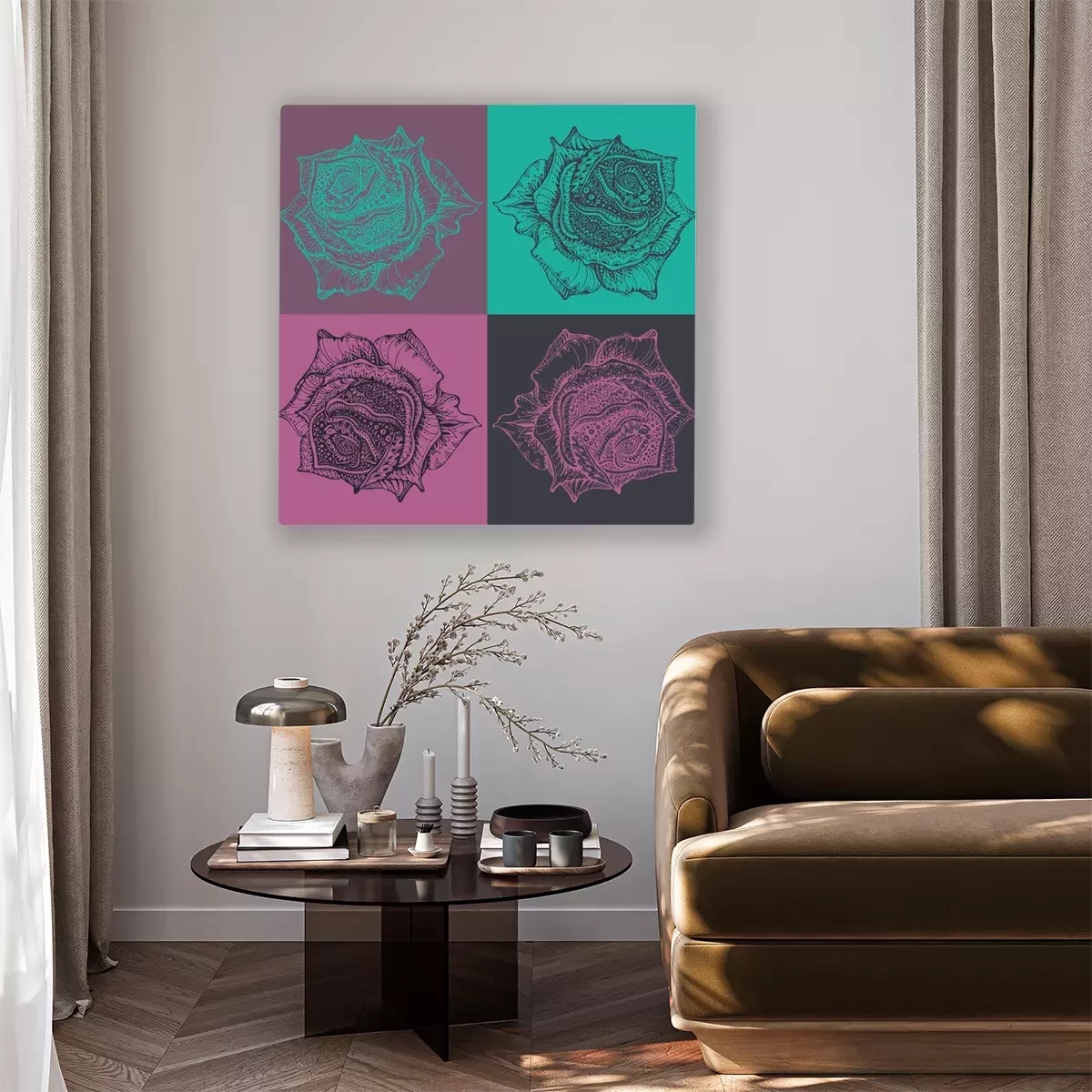 De print wordt aangebracht op hoogwaardig canvas dat op een schildersweefgetouw (spieraam) wordt gespannen. Omdat de print de zijranden bedekt, hoeft het ontwerp niet met een extra kader te worden omlijst. Wij raden ook composities aan die uit meerdere foto's bestaan en zo een coherente compositie vormen.