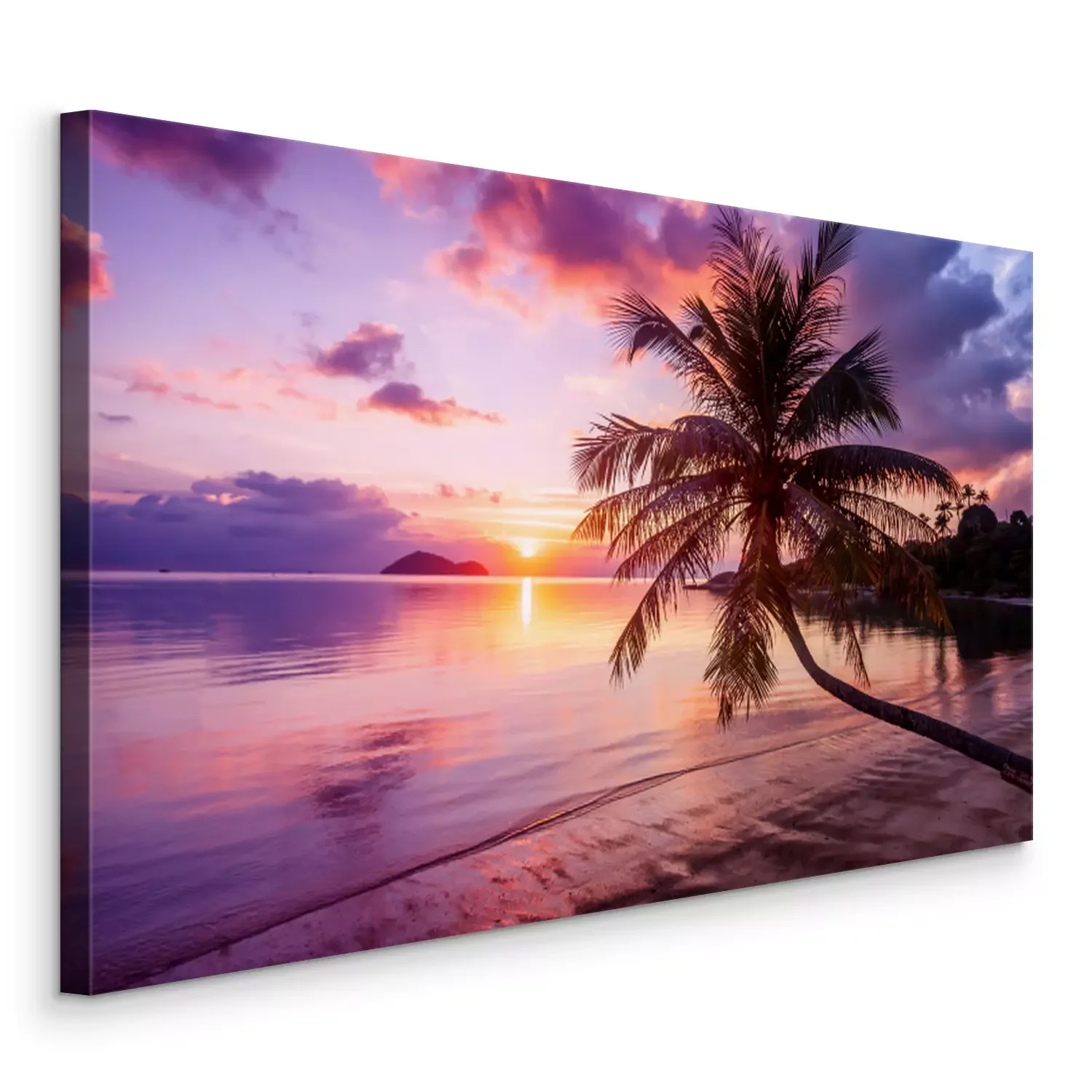 Canvas: Mooie heldere zonsondergang op een tropisch paradijs strand