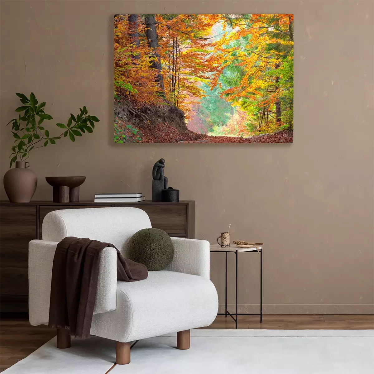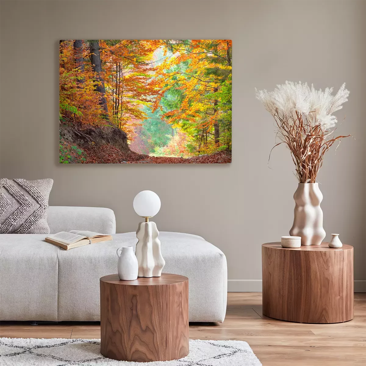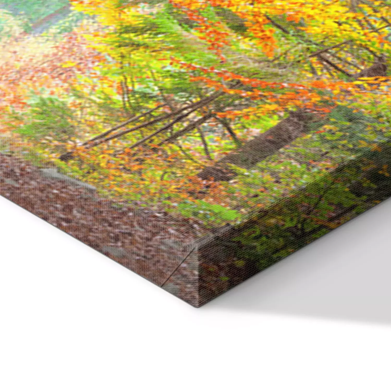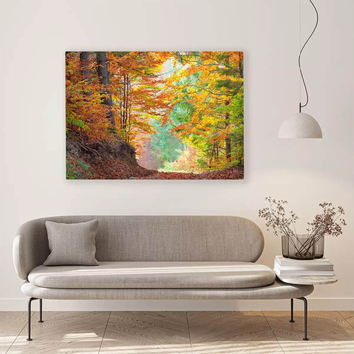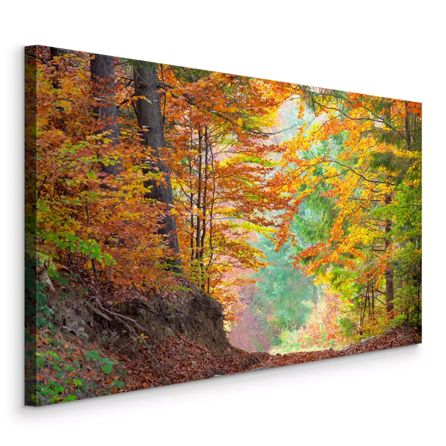 Canvas: Mooie herfst bomen in het bos kleurrijke, geel, groen op